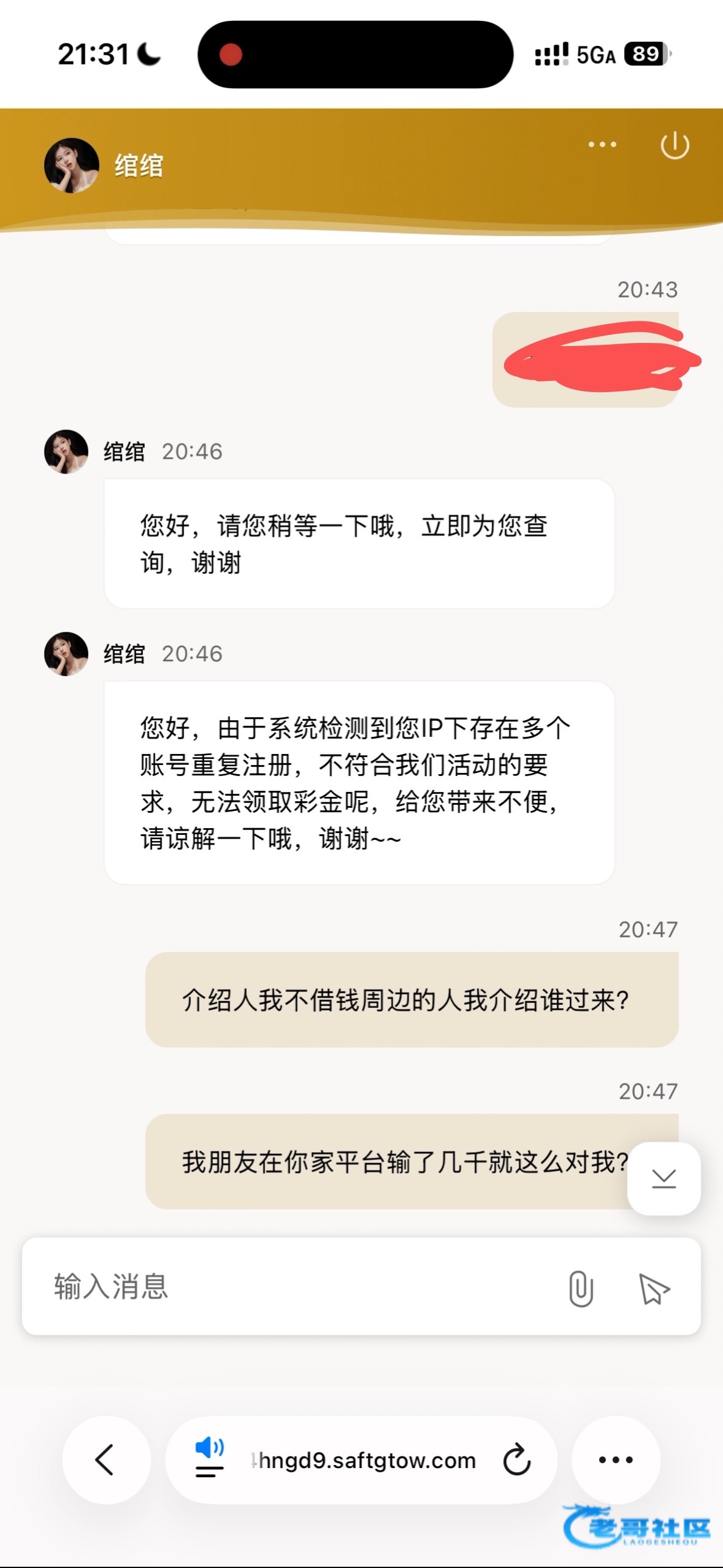 网址532.com,我邀请我朋友来玩,然后有个150邀请人彩金,需要打码8888,我朋友在他家负盈利,然后今天我领取,客服说我多账户多ip,我要是多账户了打狗天天输,我之前的12块佣金都提了100
