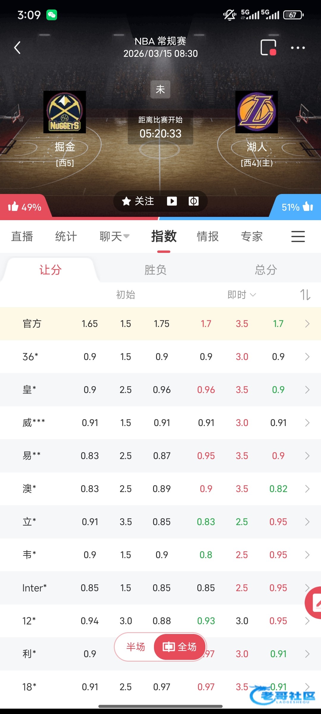 前面反买那个老哥马刺小中了,这场想跟你,但独赢水有点低,关注你了老哥,等下场跟你。熬夜扛不住等不到滚球,睡了,祝红,我也看好掘金拿下