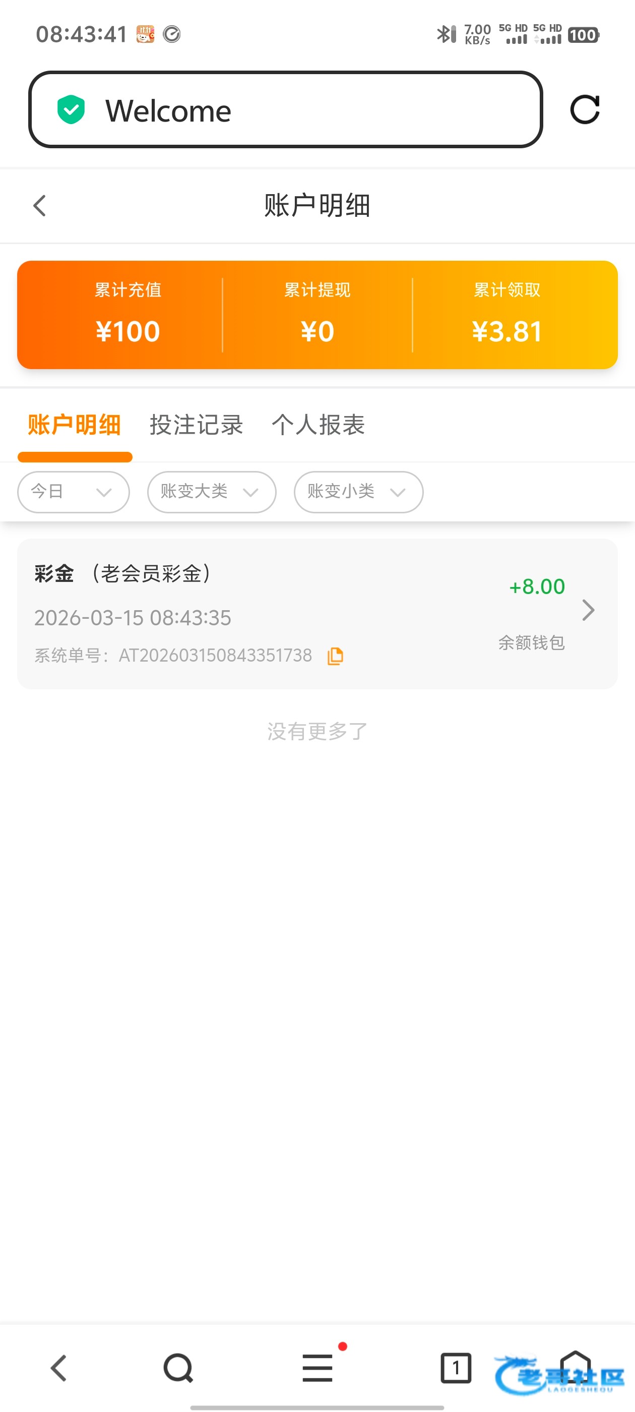 登陆账号看到送了8彩金,有账号的可以看看,之前充值过100,5092.com