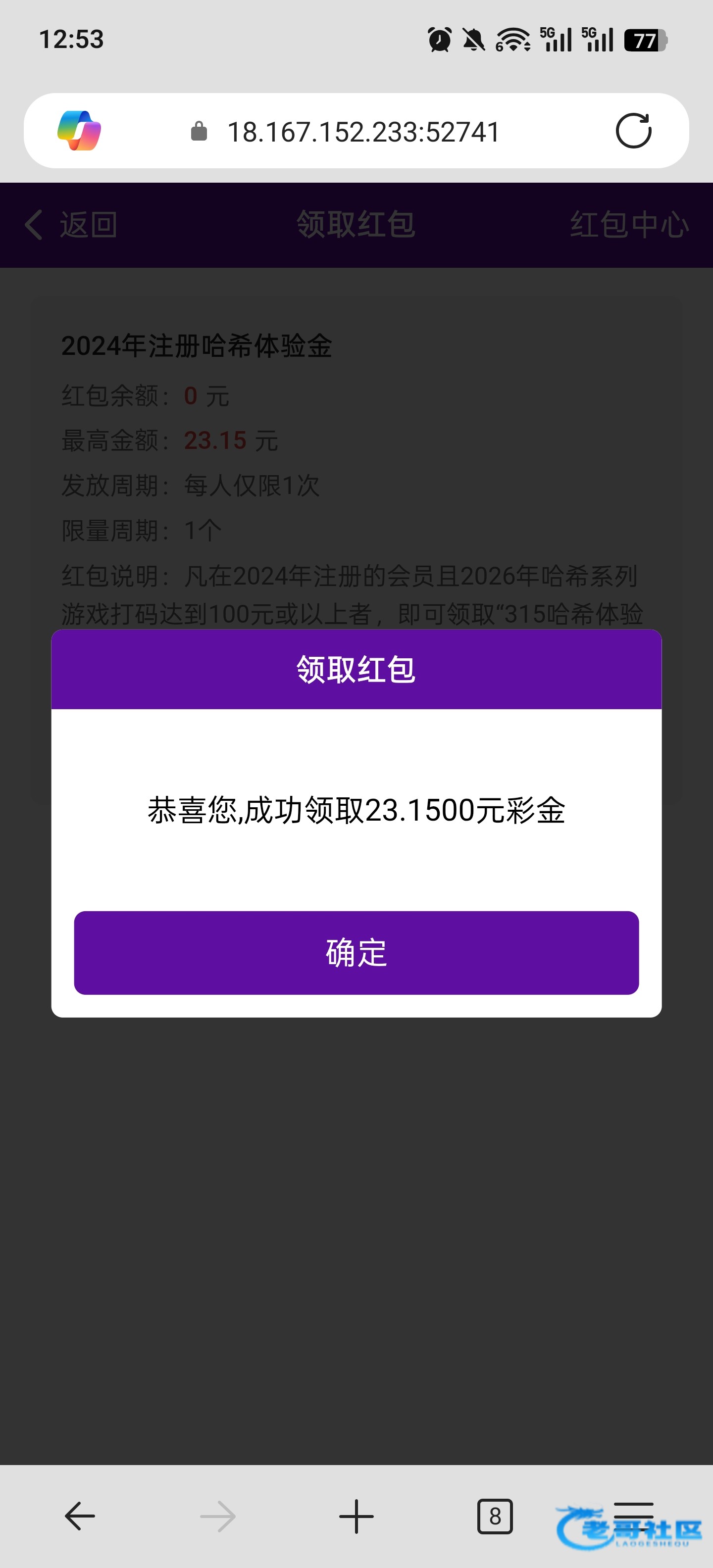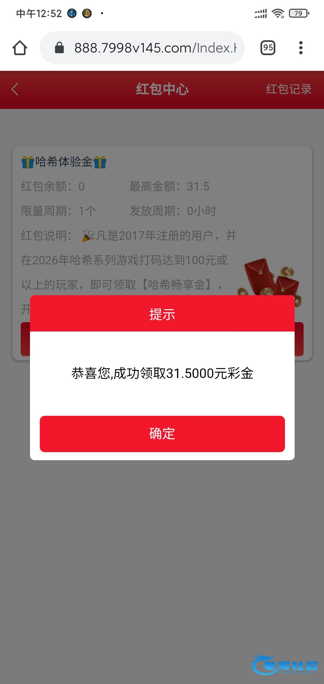 哈希系列体验金最高31.5具体是注册年份,条件要求今年哈希系列打码满一百,前段时间转盘转过高级的可以直接领取了