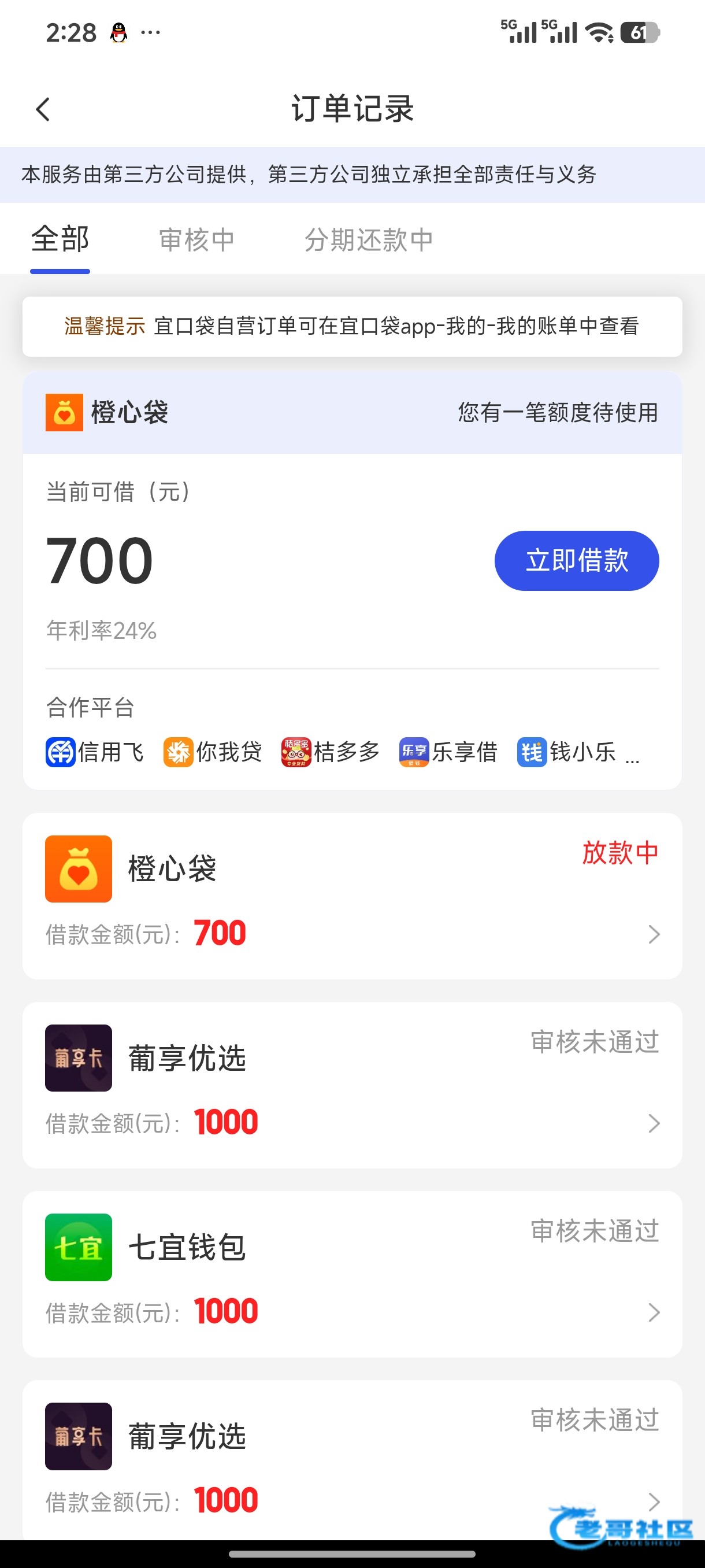 我都三天放款中了