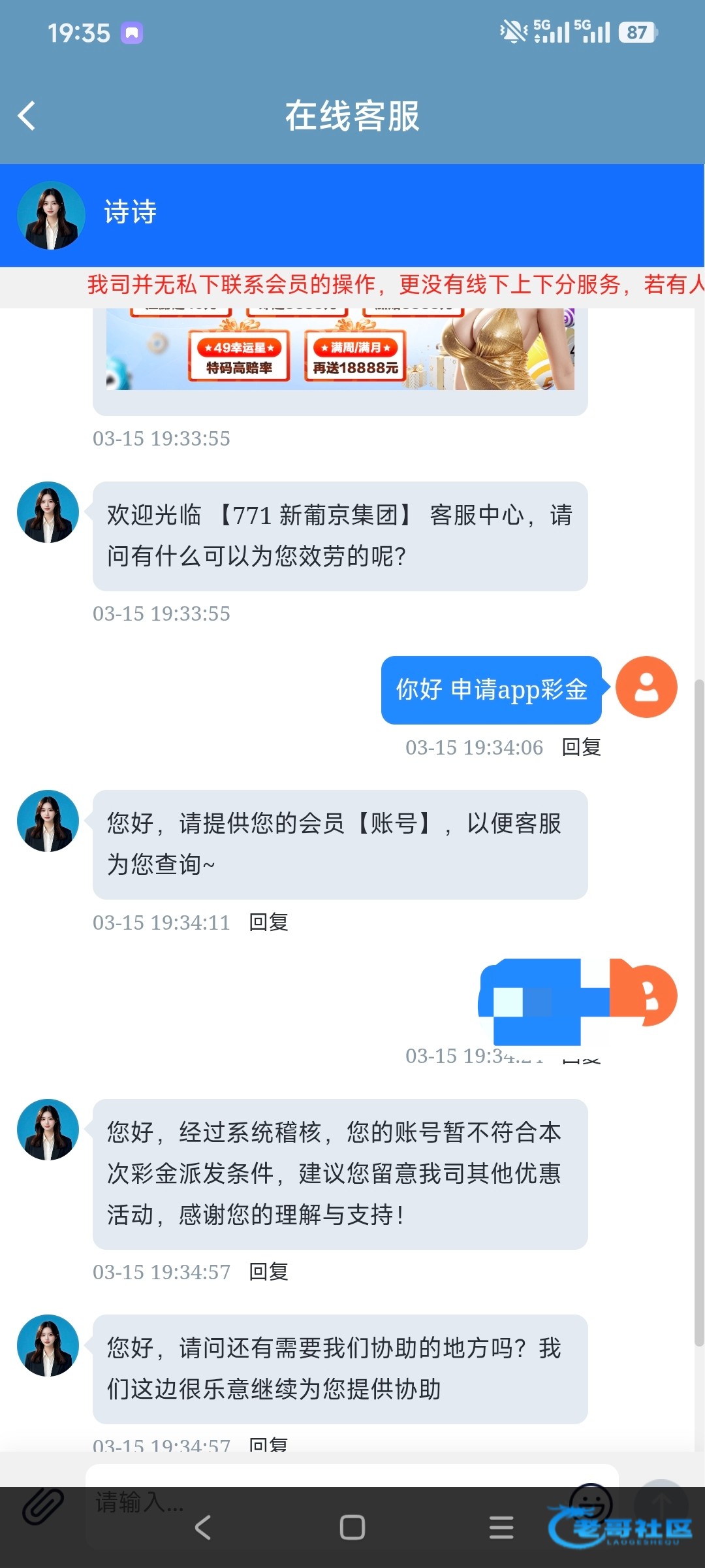 您好,经过系统稽核,您的账号暂不符合本次彩金派发条件,建议您留意我司其他优惠活动,感谢您的理解与支持!