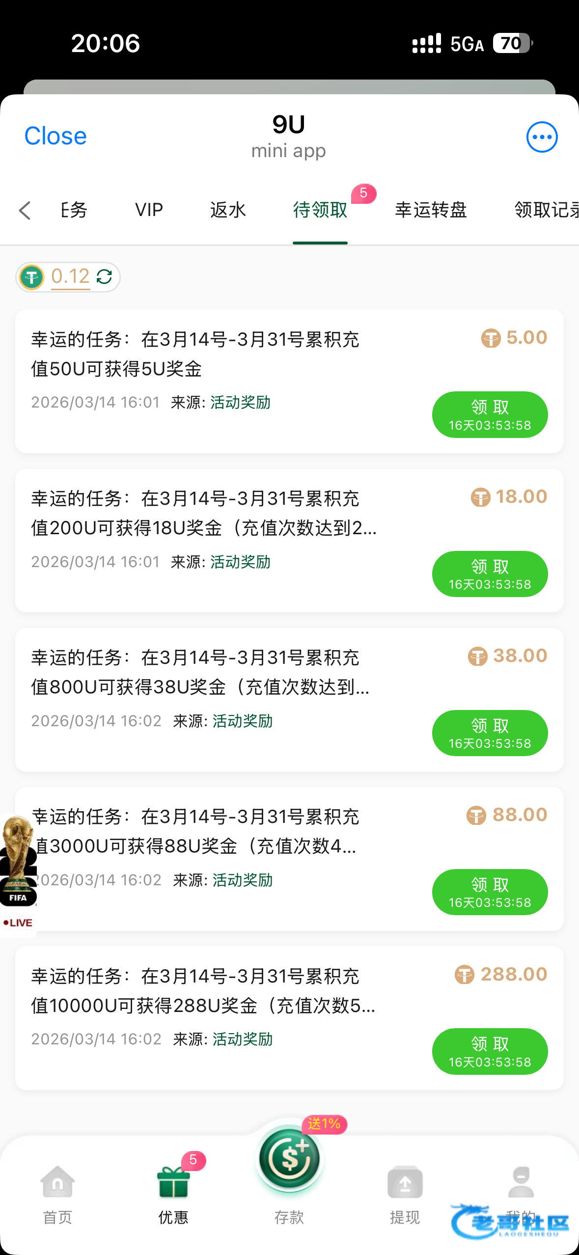 要累积充值1万u