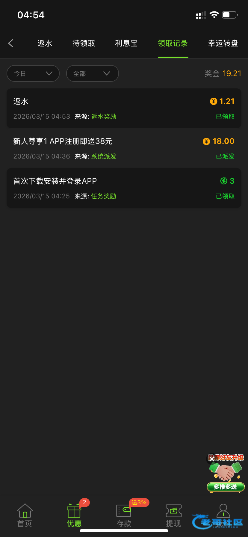 领到了 打到100多没提 不知道黑不黑 绑定的银行卡 第一次只能提银行卡就没要