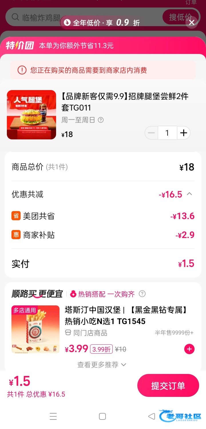 打开美团,直接搜:品牌新客,塔斯汀汉堡+可乐只要1.5(这汉堡可以比华莱士的好吃多了)