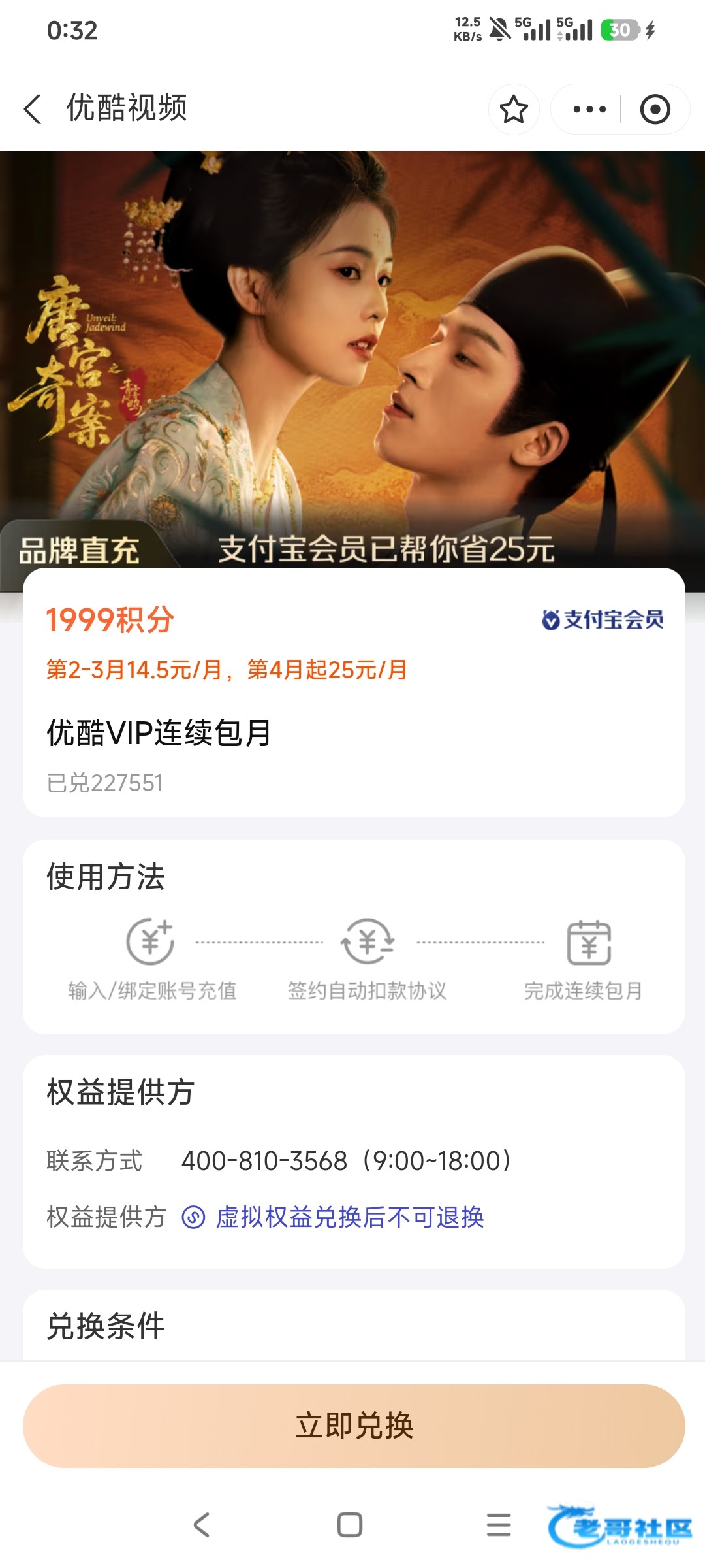 支付宝积分兑换优酷会员,可以出闲鱼。得一餐饭,有兴趣的兄弟可以去试试。