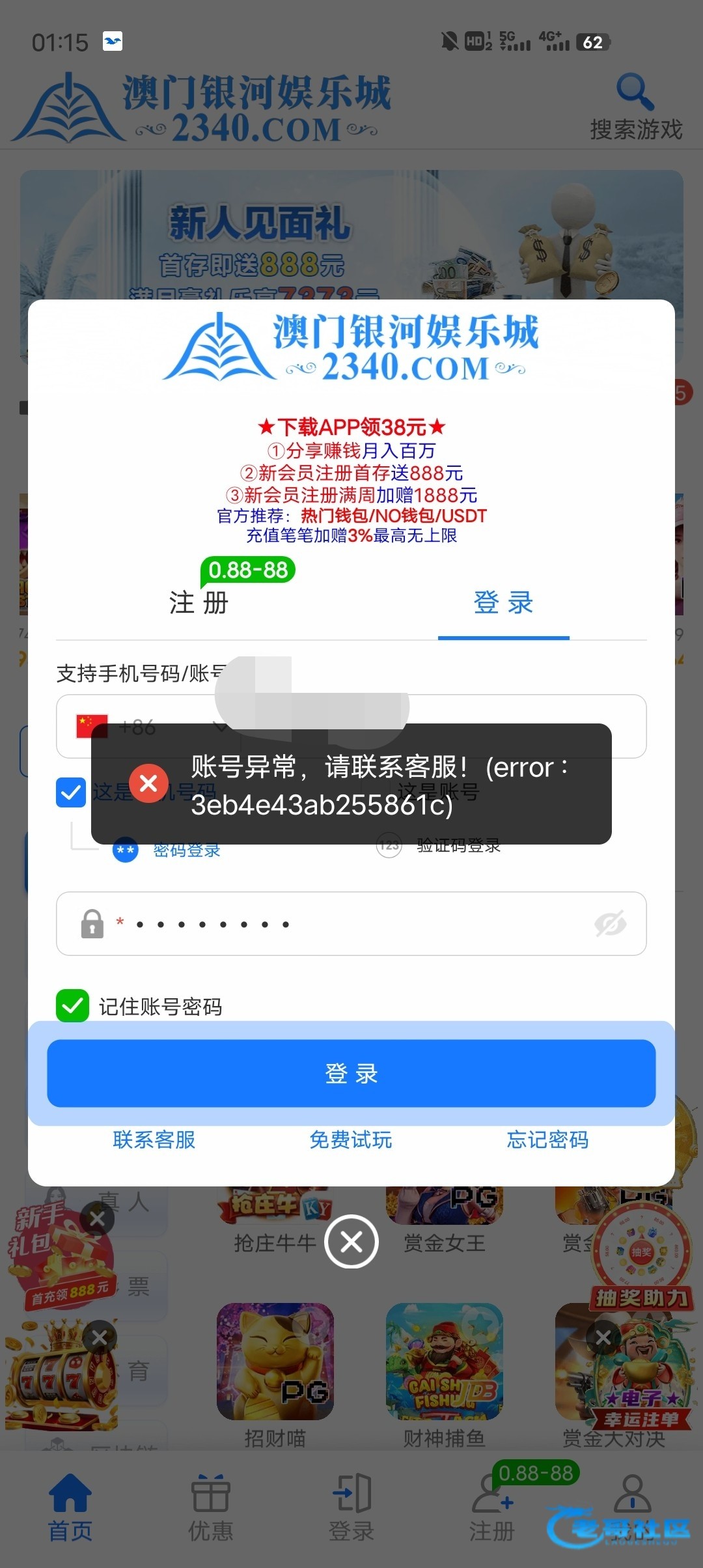 没多IP的情况下,新人显示充值两次 ,可以领取38彩金,领到了,打出来了又不乐意了,就是骗新人充值。