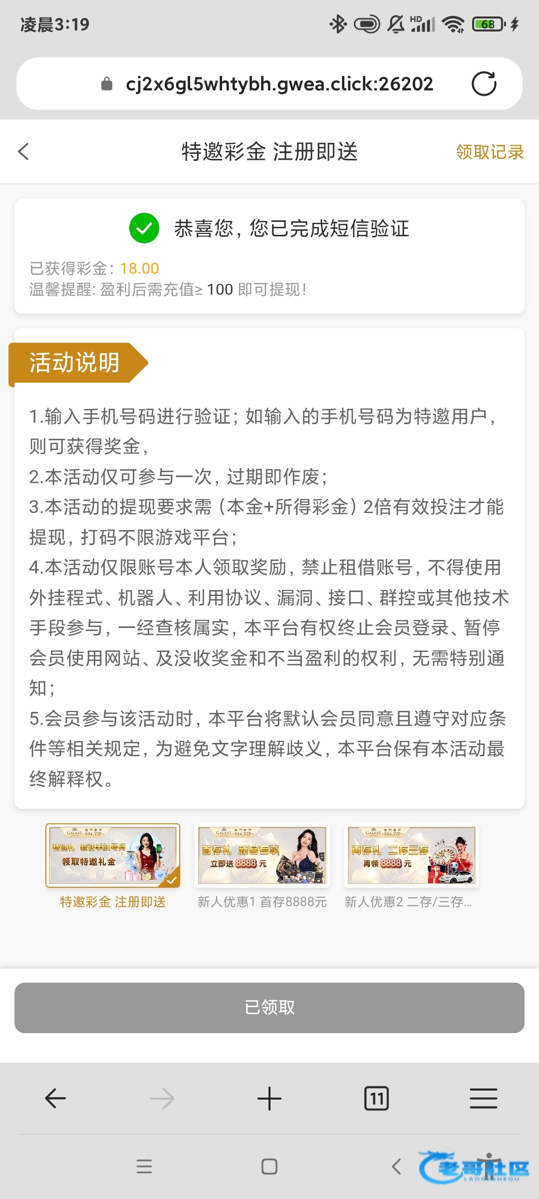 无聊看a看到的,以前注册过了不是特邀,刚才是了,盈利后要充100,链接994.vip