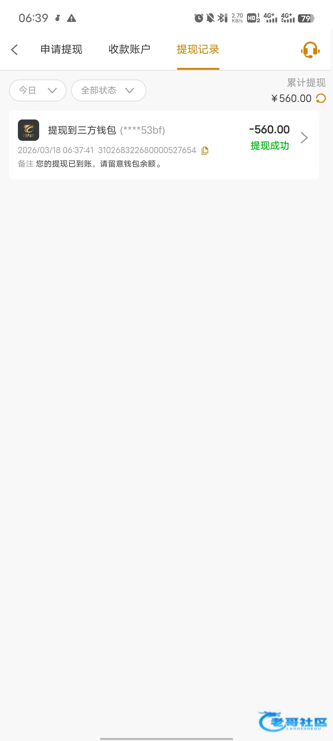 存了15u,提了70u