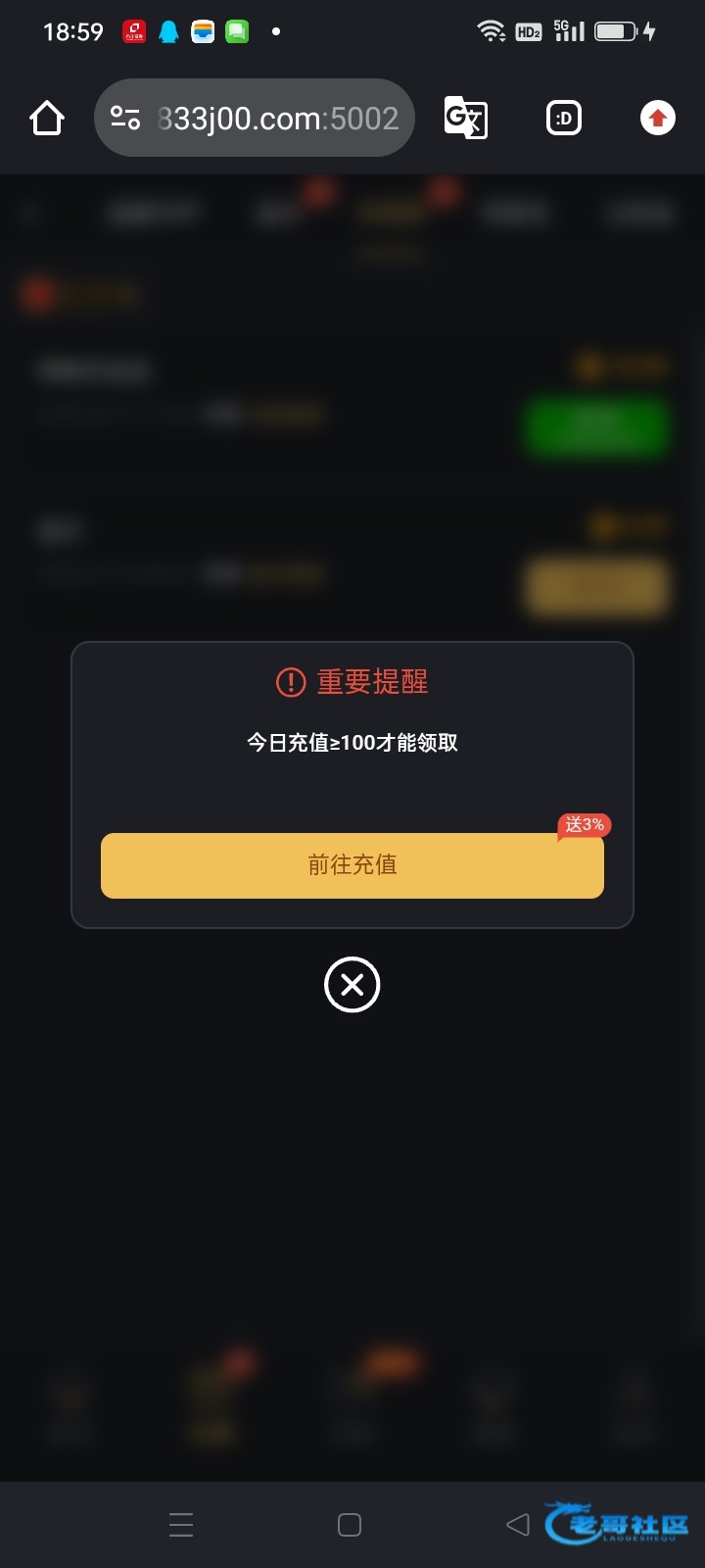 昨天才充值500,挂了今天。去领取,还要我充100。