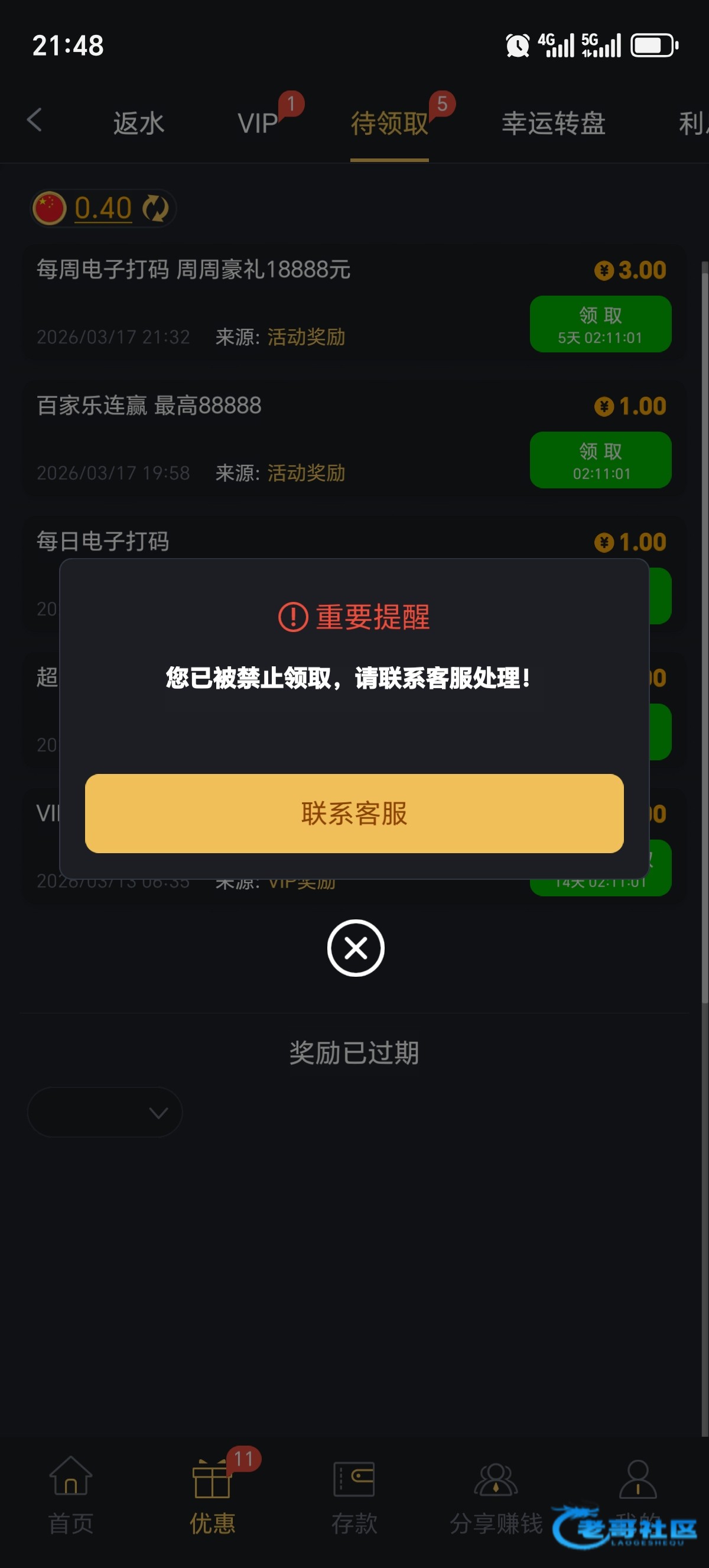 优惠全部封禁了
