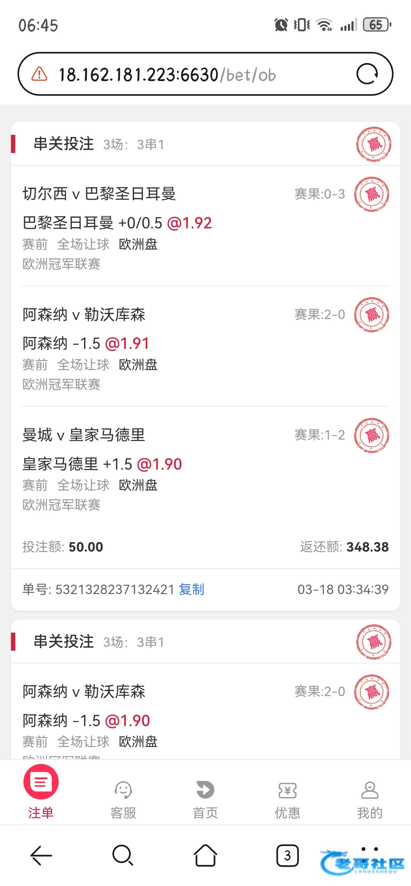 继续摁个3串1波胆,就当捐款,中了发200倍本金红包