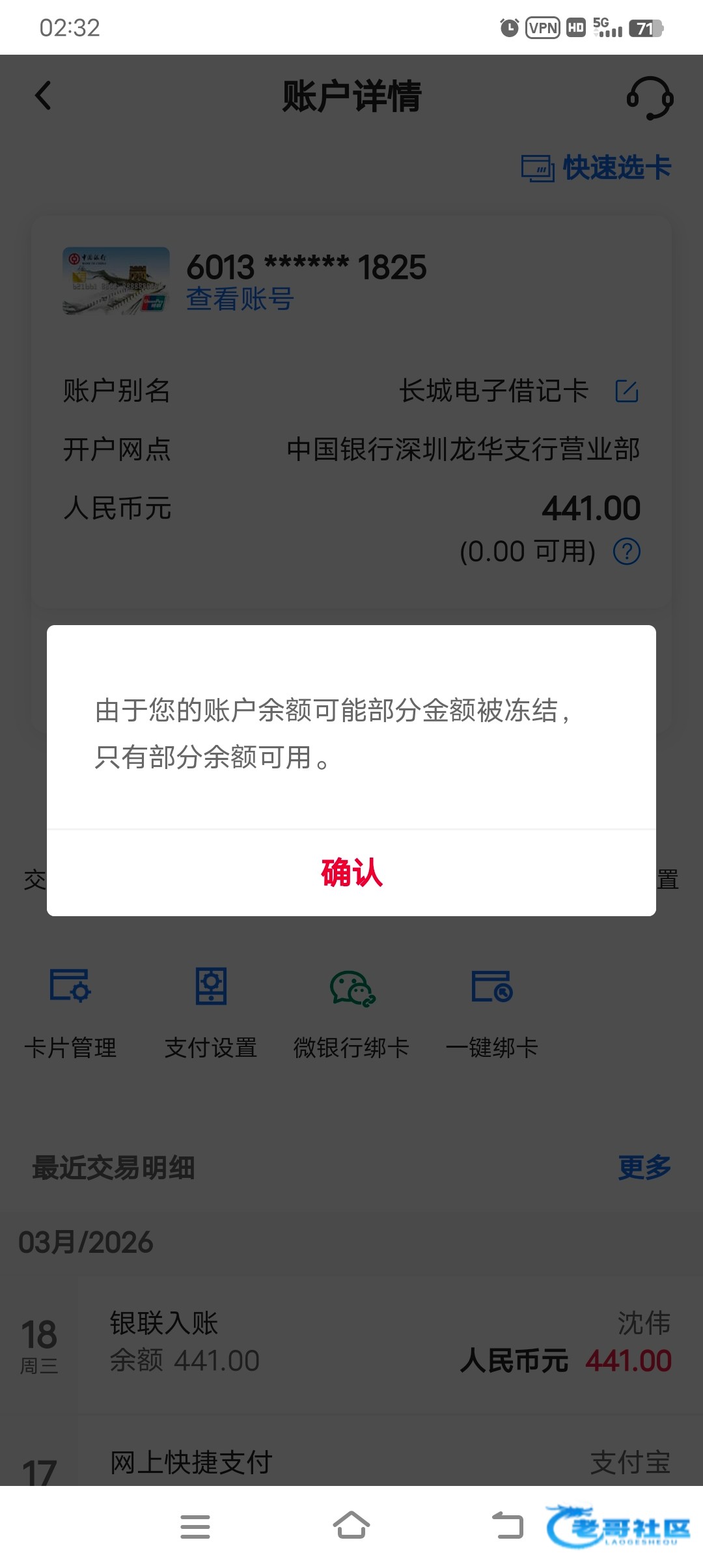 过几天就自己解开了中国银行稳的一匹被冻结过好几次了都自动解开的
