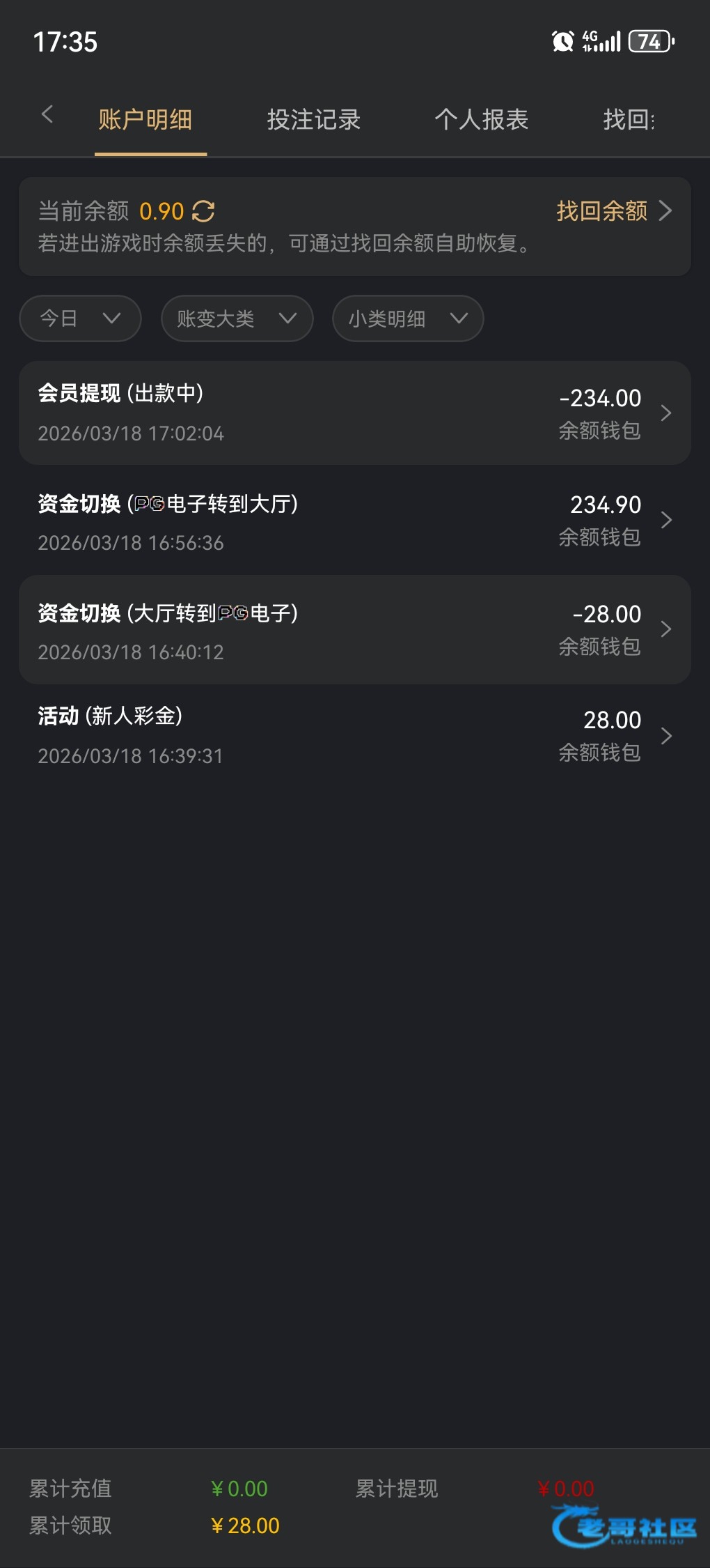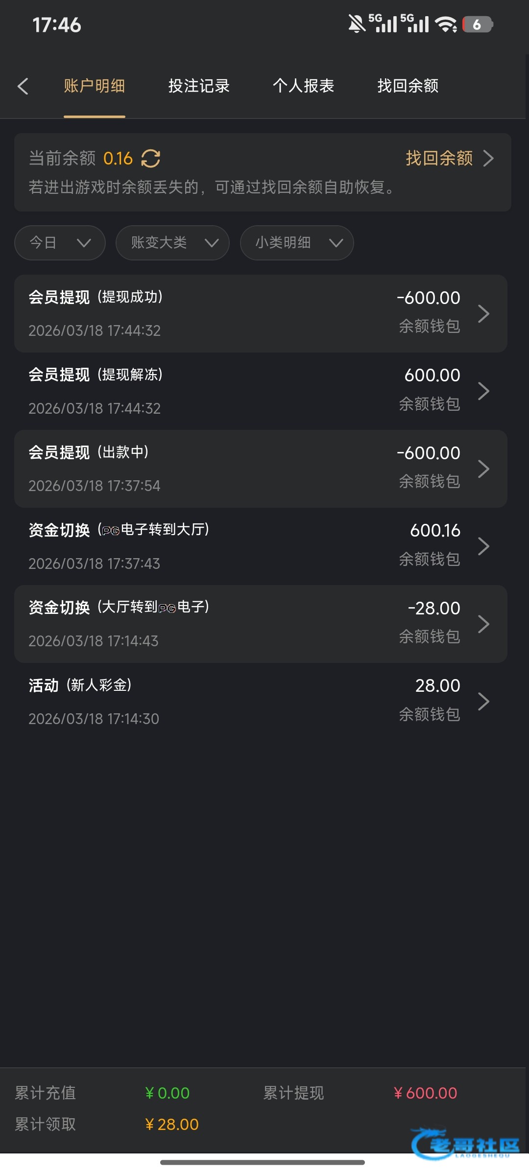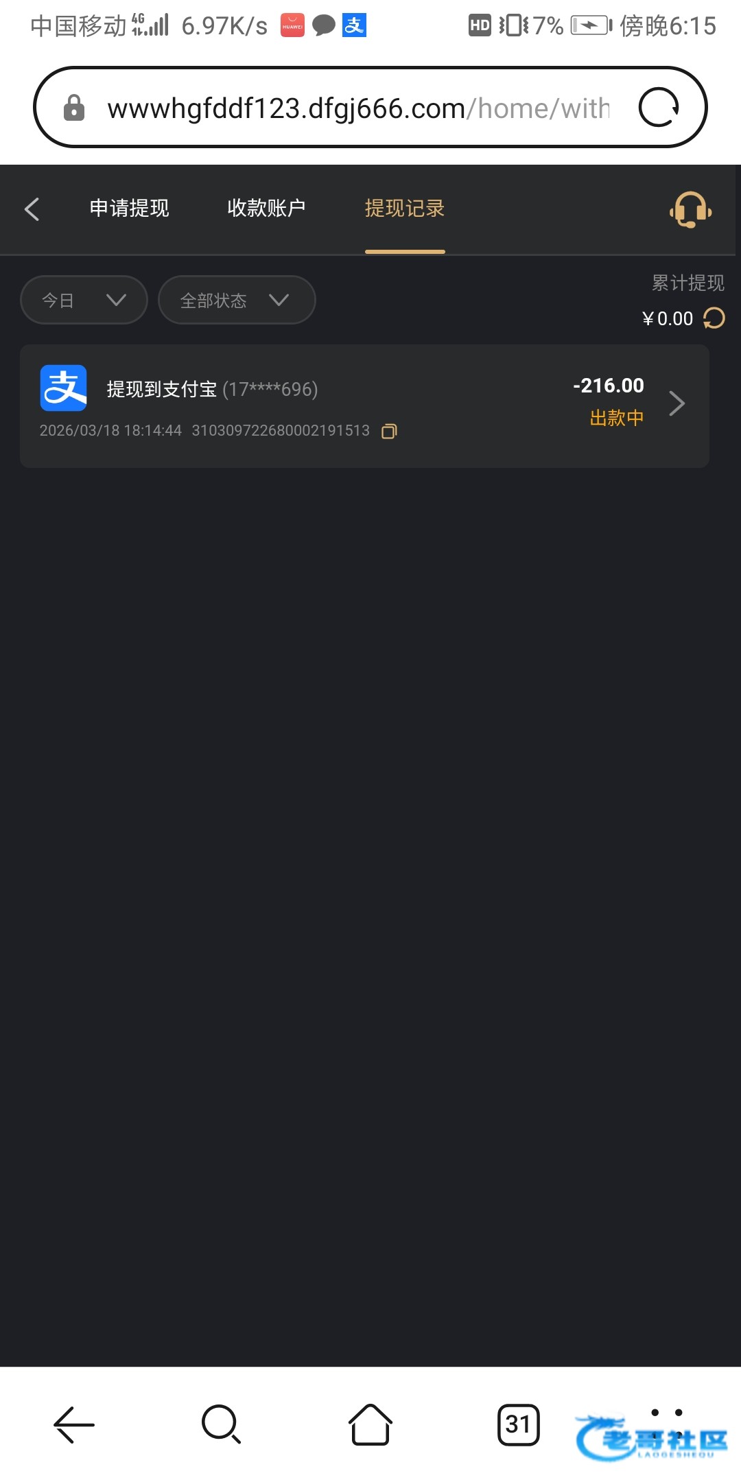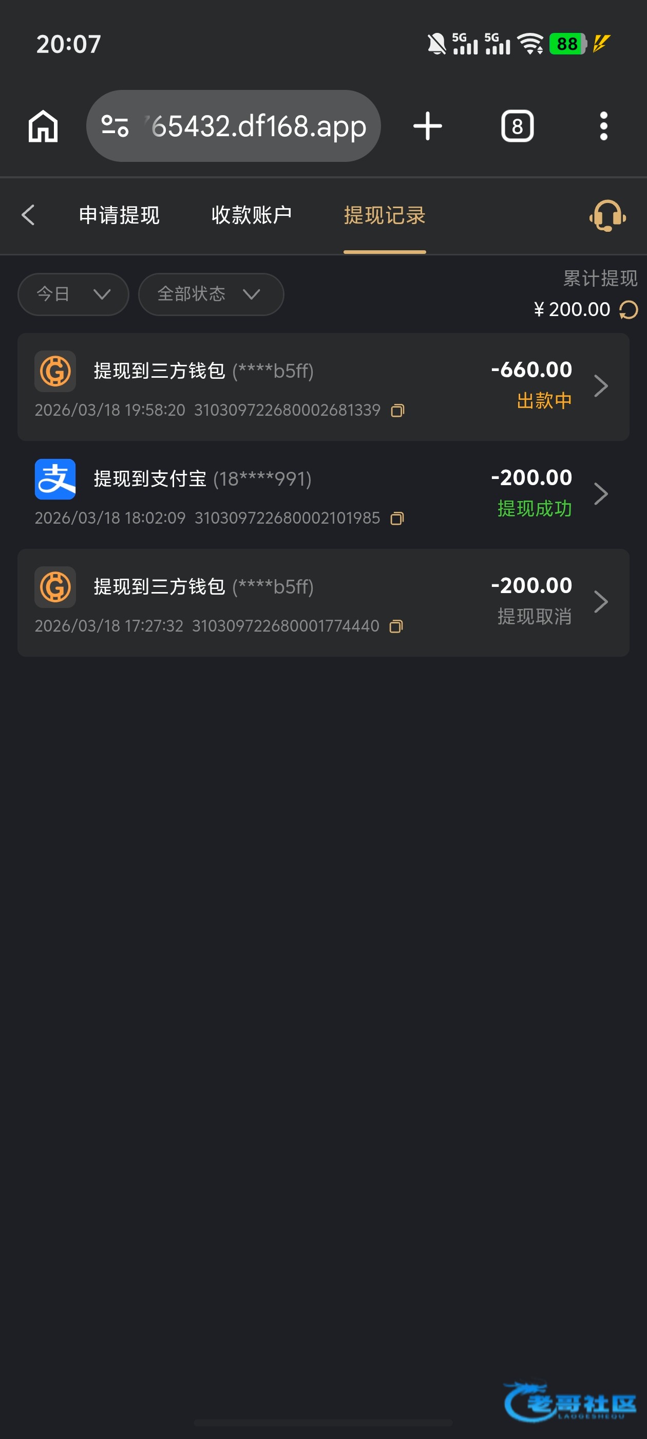 一个号提了40另一个提了20不敢打多,但都到账了