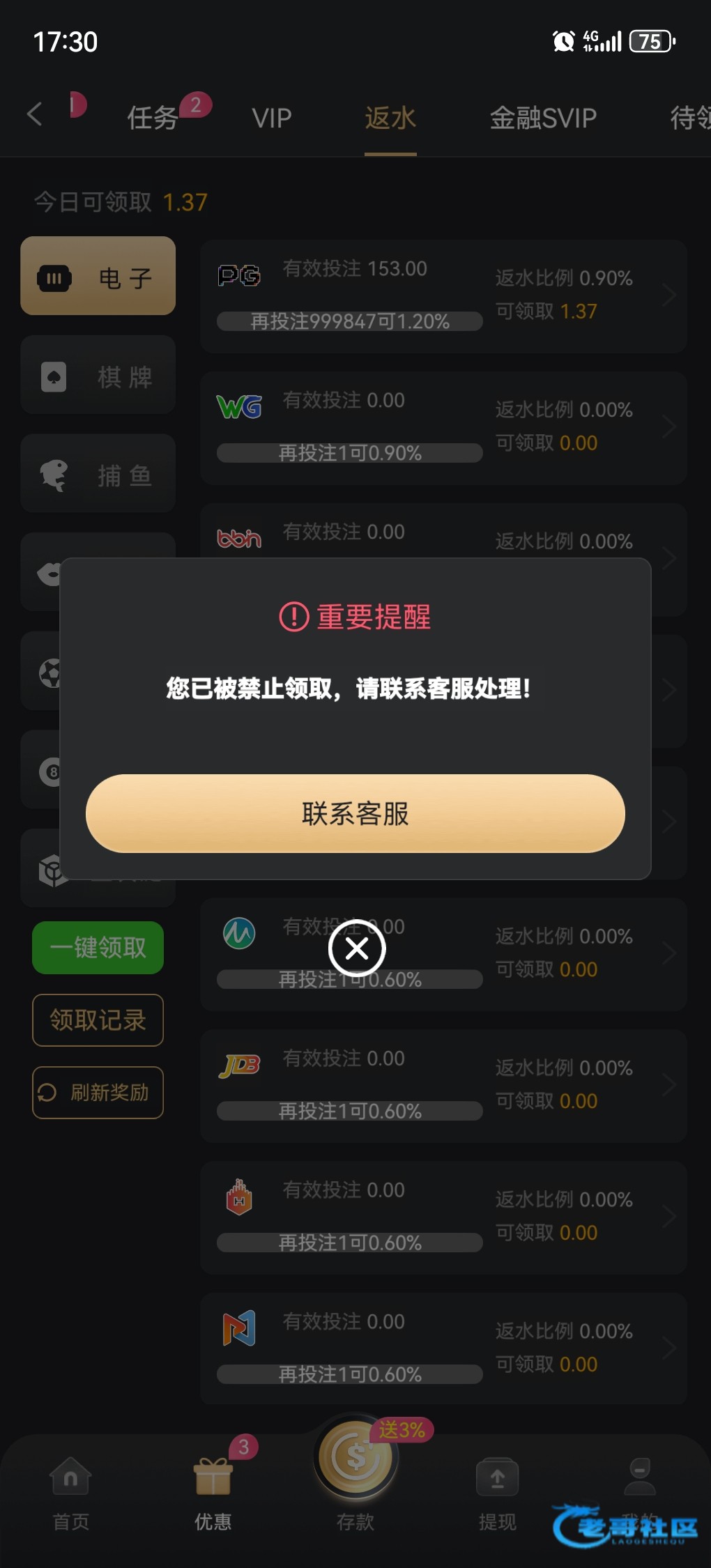 我去问客服,客服给我说出款中,还静止领反水这些,都说出款中