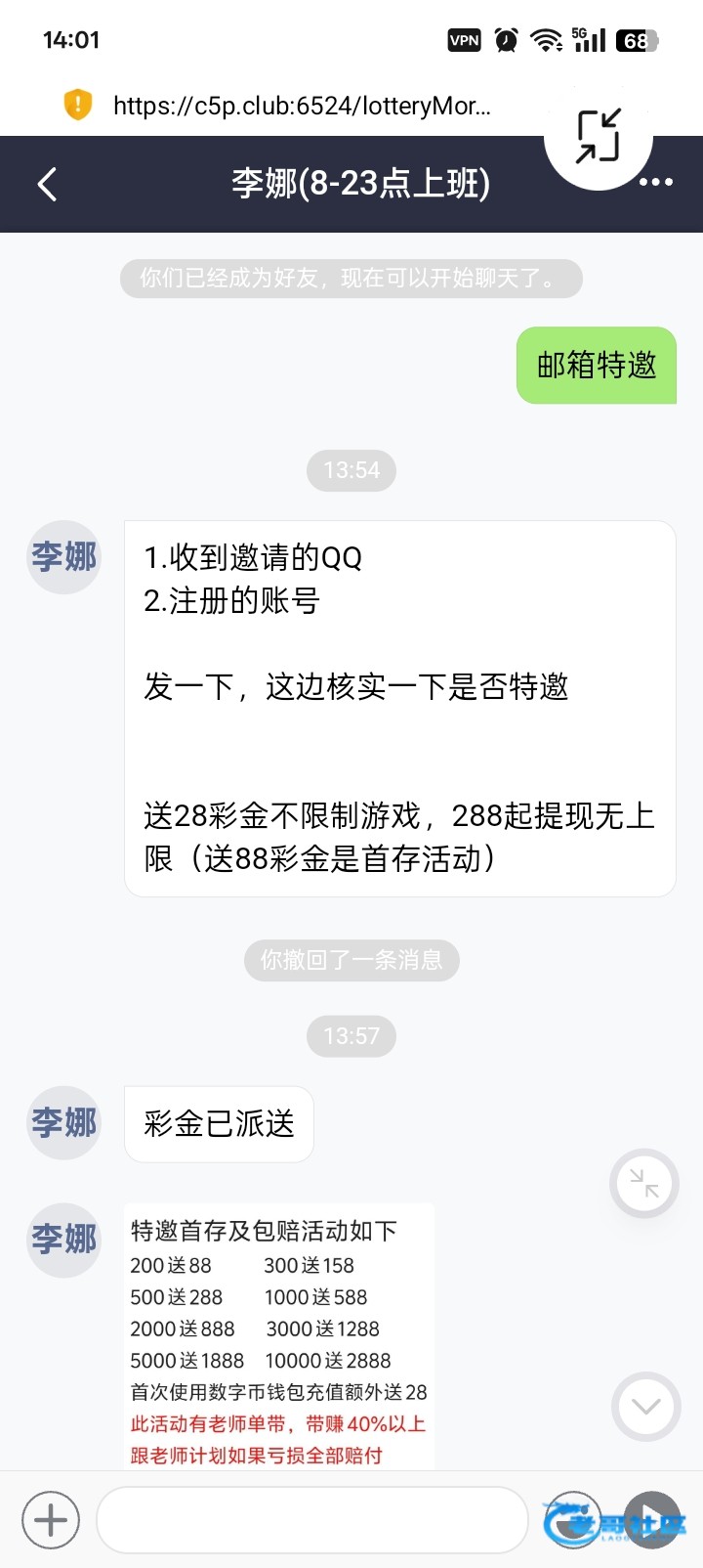 碰瓷邮箱特邀28,另一个没收到也碰到的了,老哥们去试试吧 都是百家乐一把挂链接c5p.club