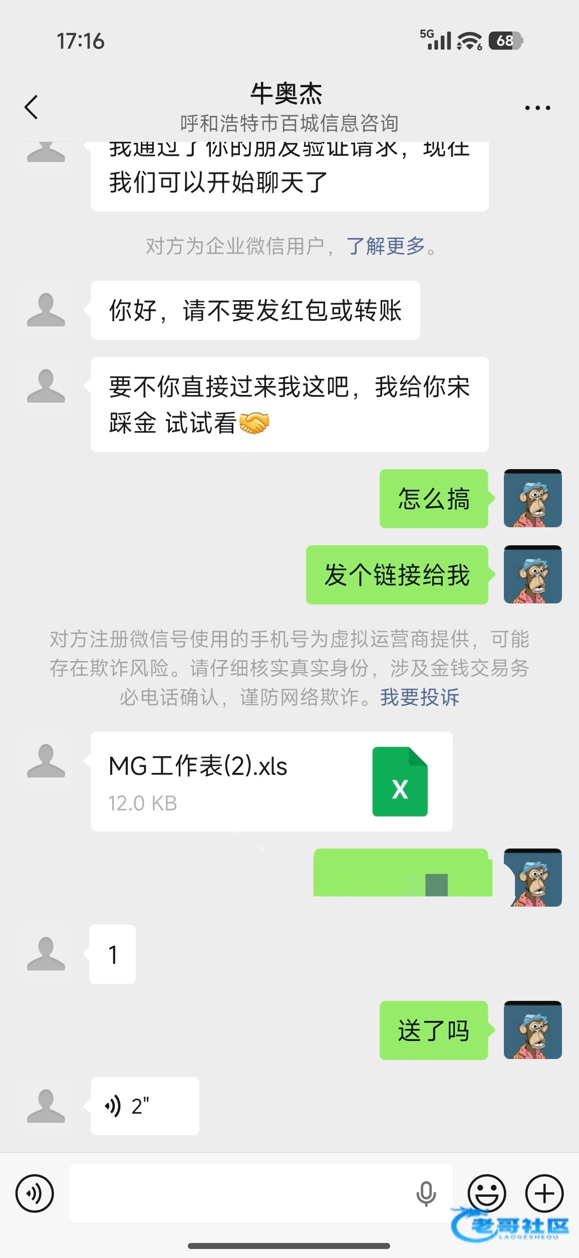 刚才钱能买币遇到这个人送彩金 送了68没打出来 勿充值 直接加微信去碰吧……