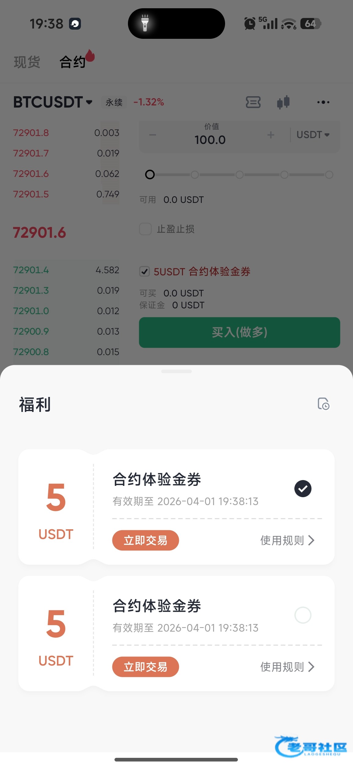 合约拉倒最下面点一下转化,他会弹出来提示要开通,开通了就有卡券