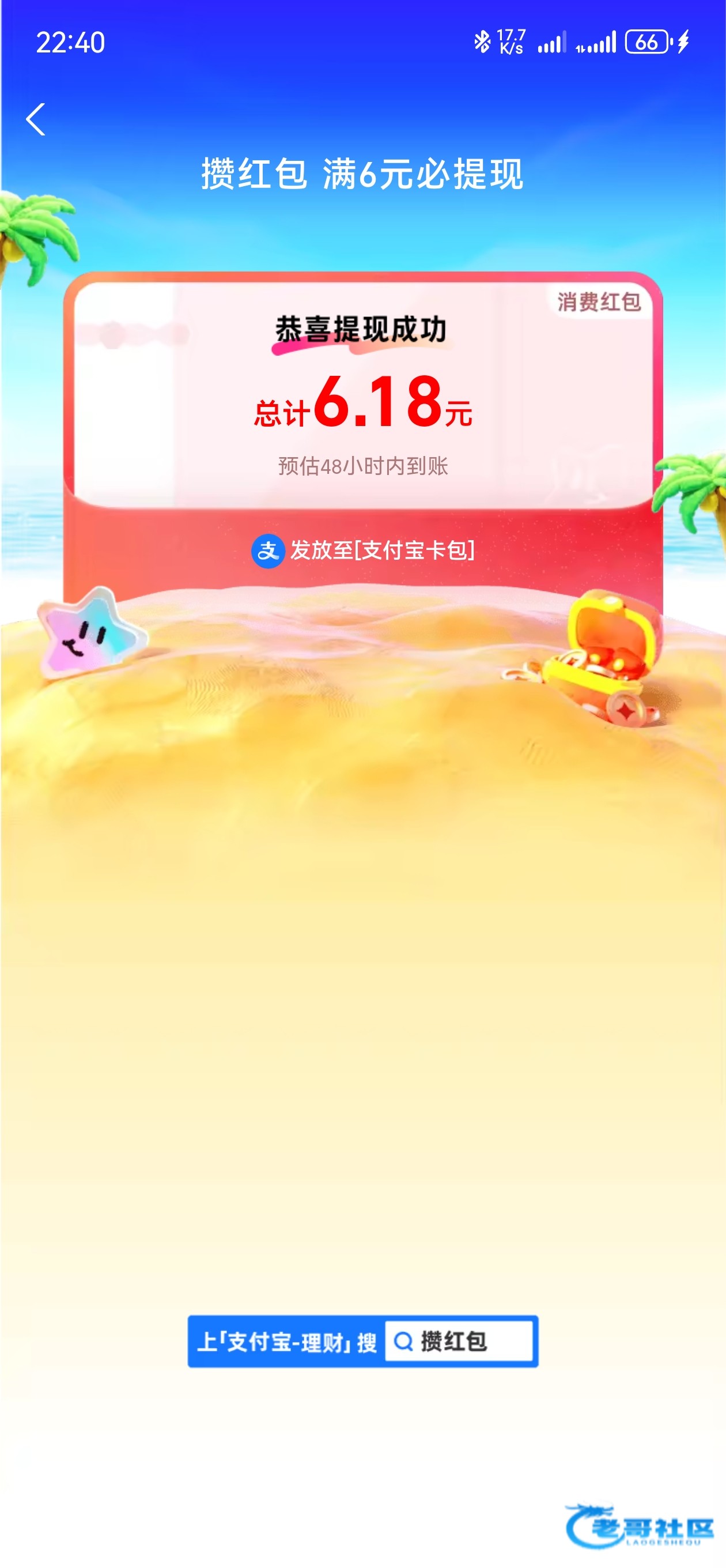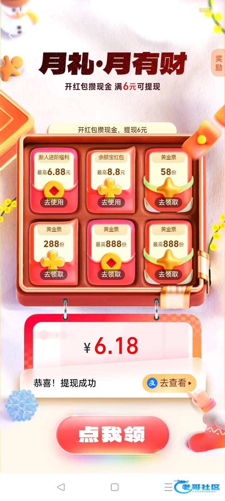 支付宝理财页面上方放大镜搜索月礼,我换了一个号,只搞了6.18,任务简单下载一个蚂蚁财富就搞到了