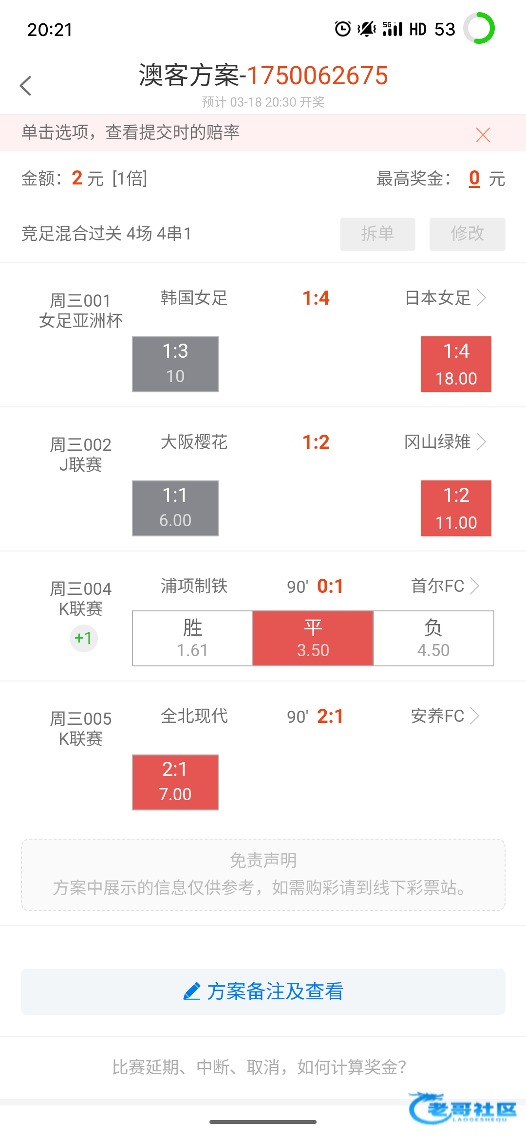挂壁了,早上研究了4场复式要144,身上20块,下午去竞彩店果单挑,翻了10倍,