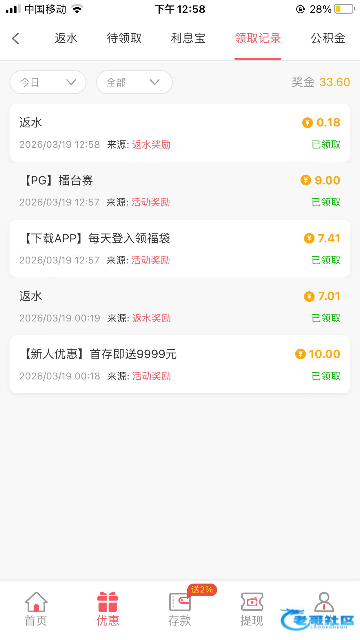 提现的又又有彩金可以领10块加19加1一共30