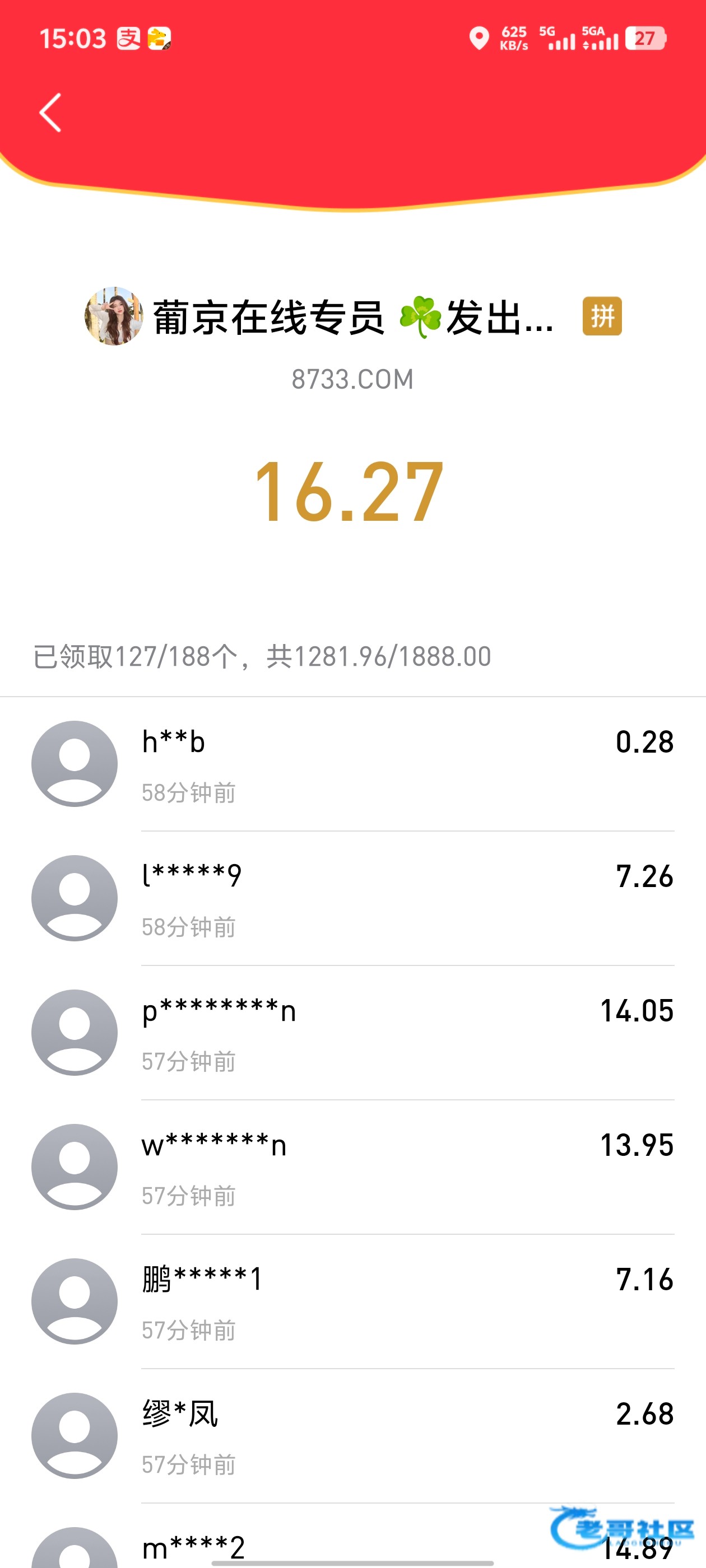 这叼台没啥格局,V4了,特邀加了专员后,领了一两次红包,充值少或者不充值就直接踢出群,大概两三天发一次爆浆红包那种,没意思