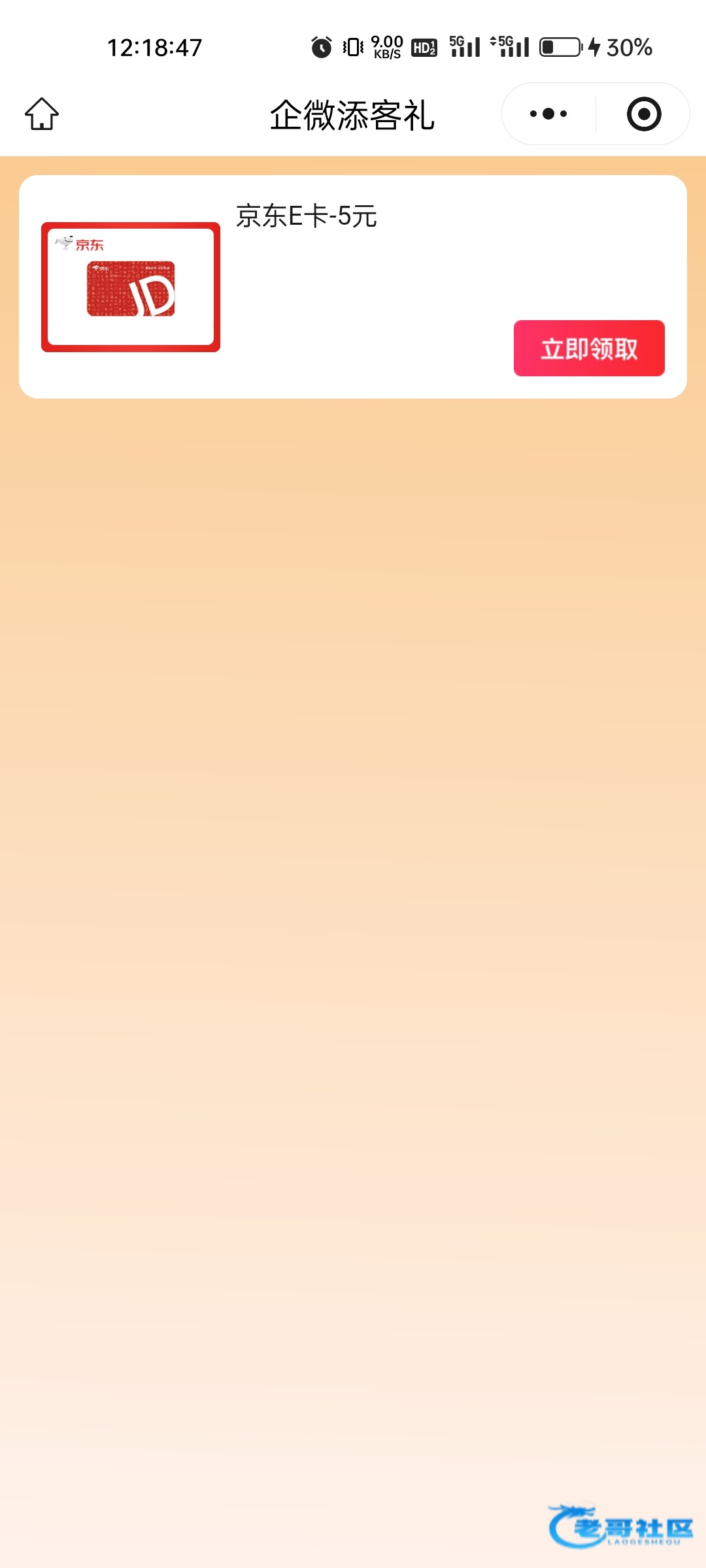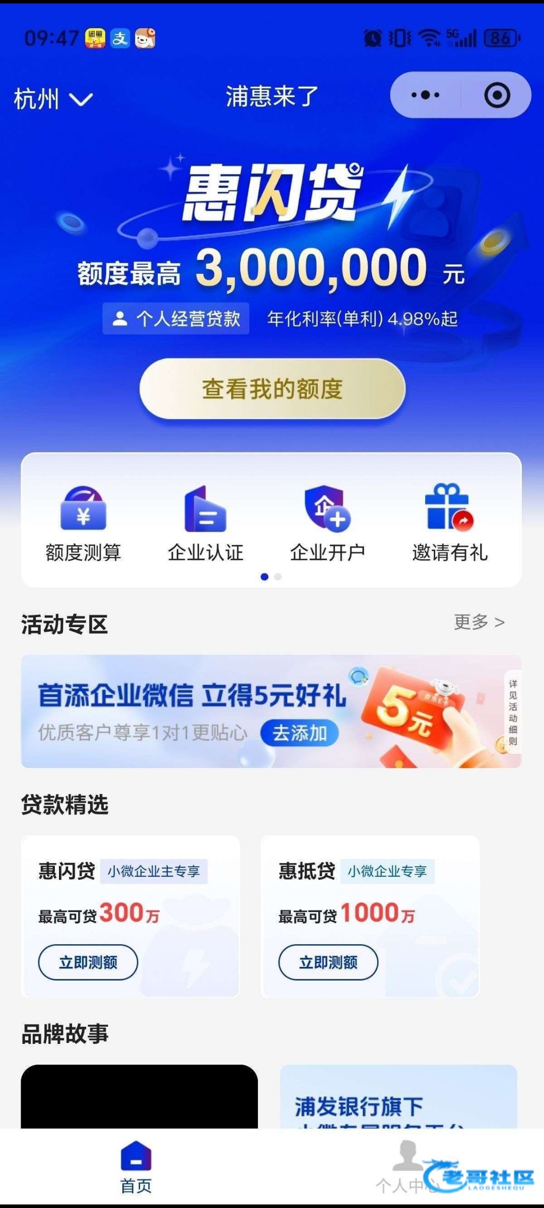 微信搜浦惠来了小程序,首页横幅找到 加企微得5元好礼