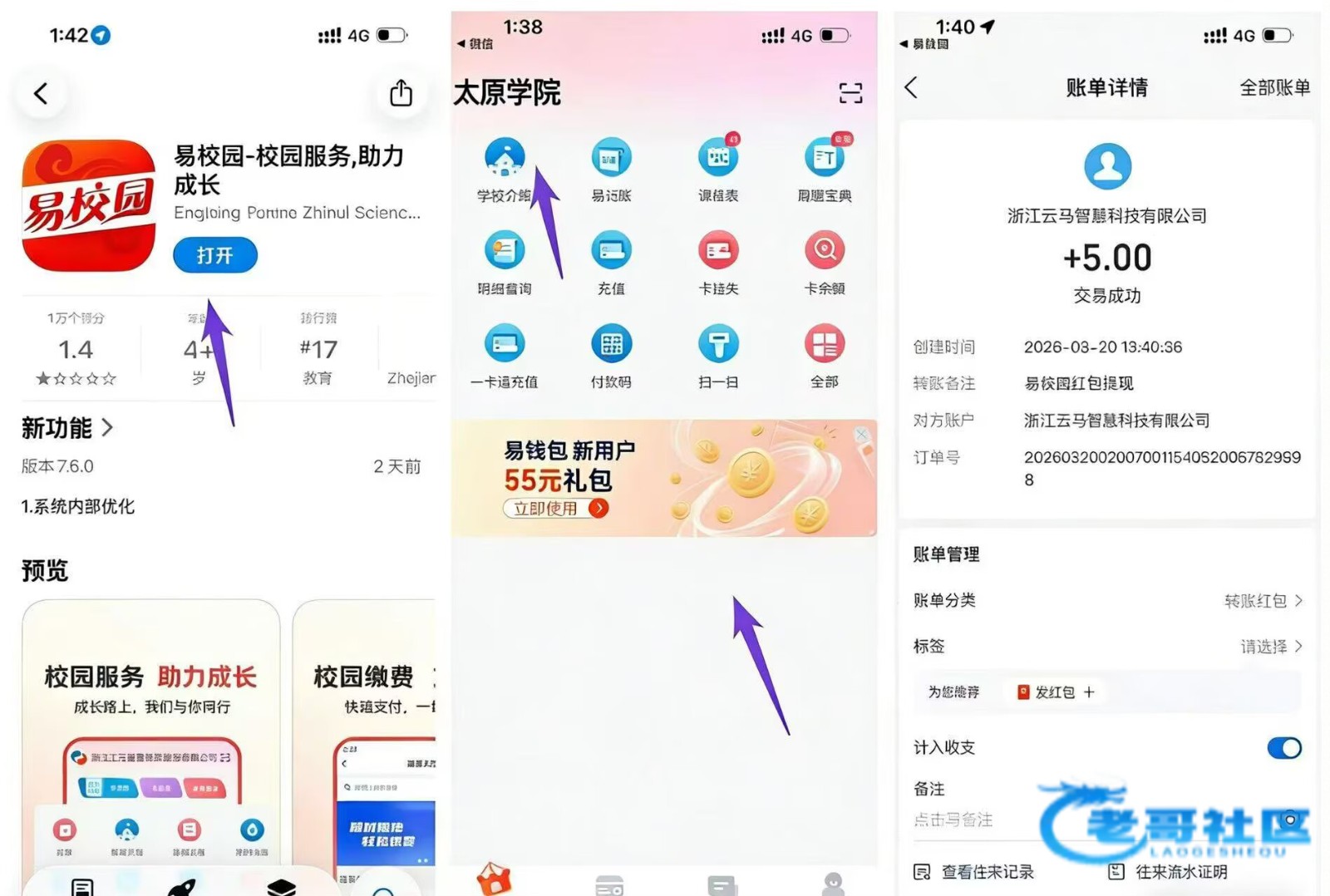 下载易校园APP 学校选 【太原学院】 其他学校没有,付0.1 5r秒到