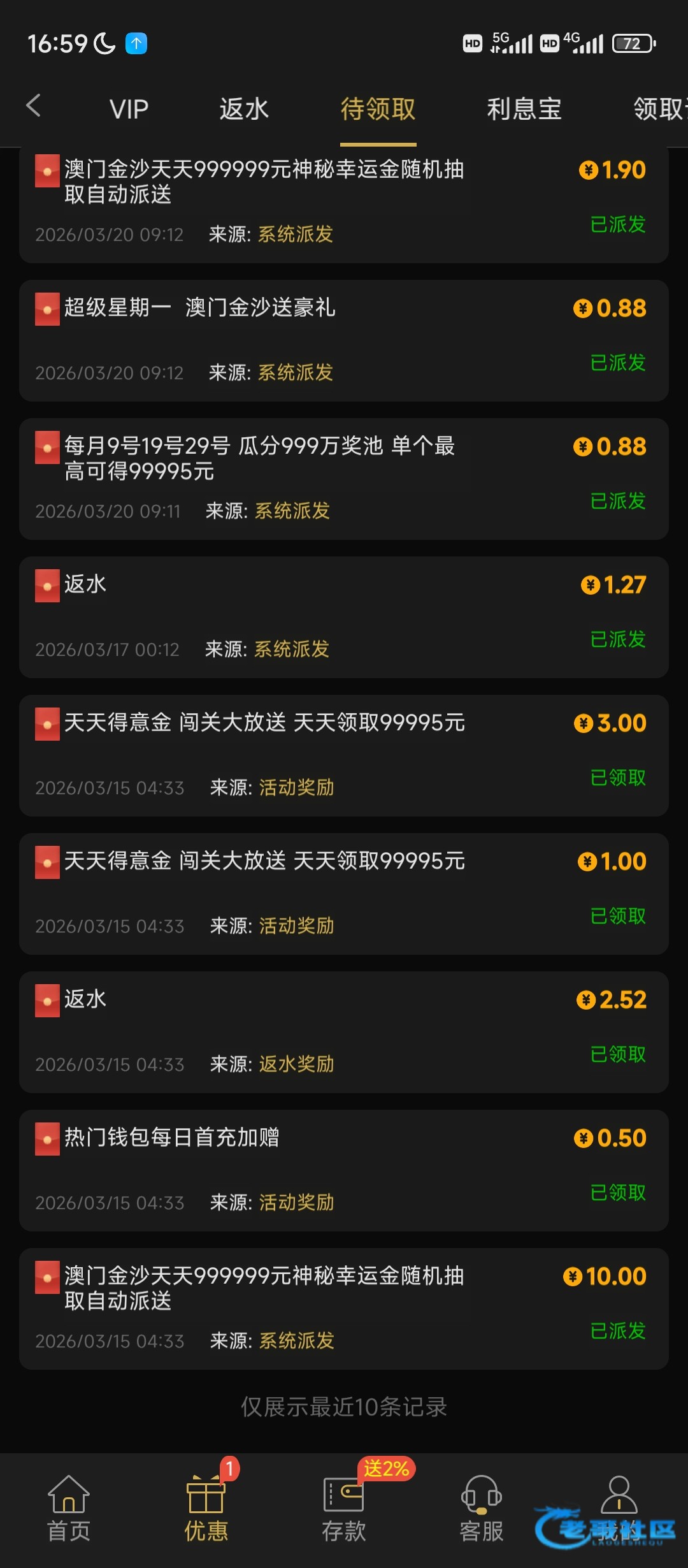 恭喜发财25 ▶ pan201314 今天1.9的幸运金打到了100块,提款说我还有900多打码。半年钱的两笔特邀彩金39的打码现在都还没打完,问客服查询半个小时,一句话充值一笔就清除流水,玛德,老子总打码1800多,搞不懂,账户是充值过的 5天前