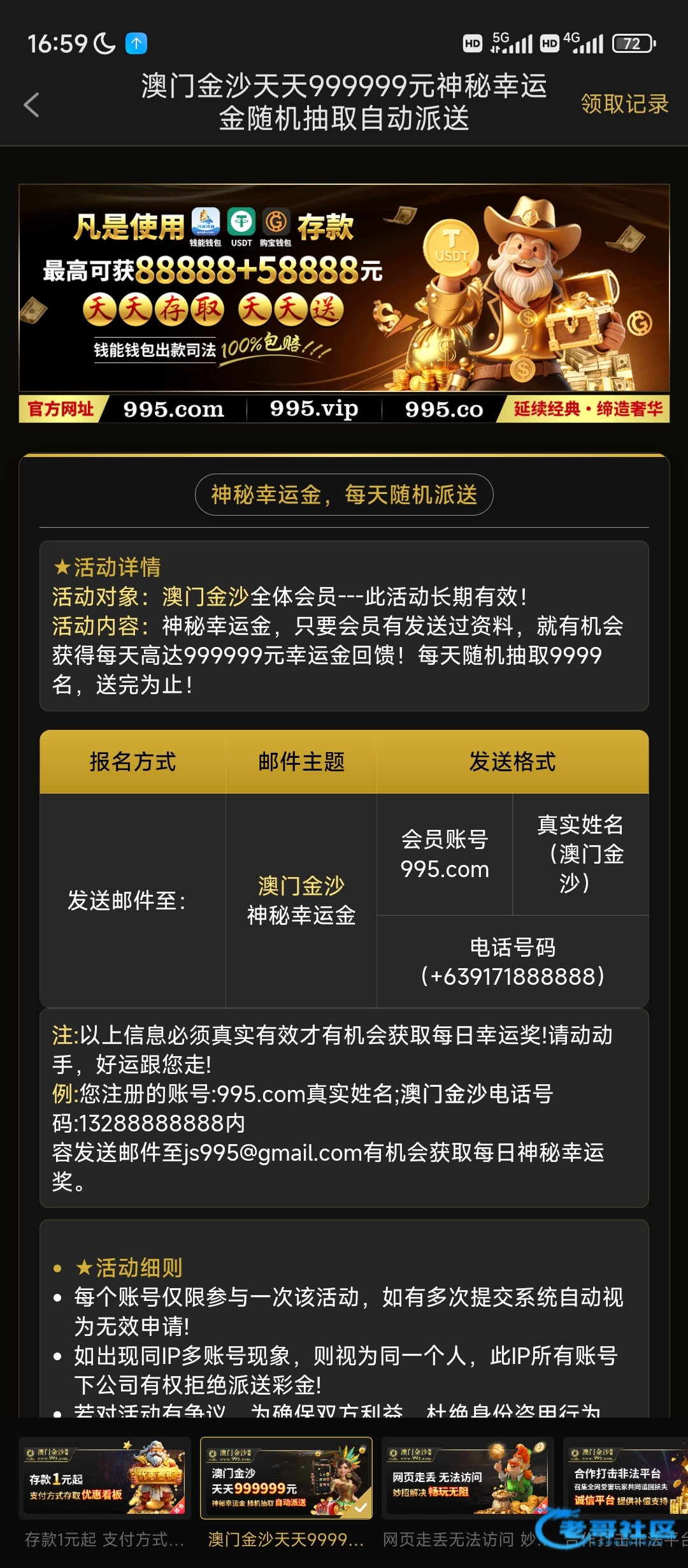 他压根都没发没领到就发了,逗你们让你们去的,他那些彩金都没有这个发邮箱的
