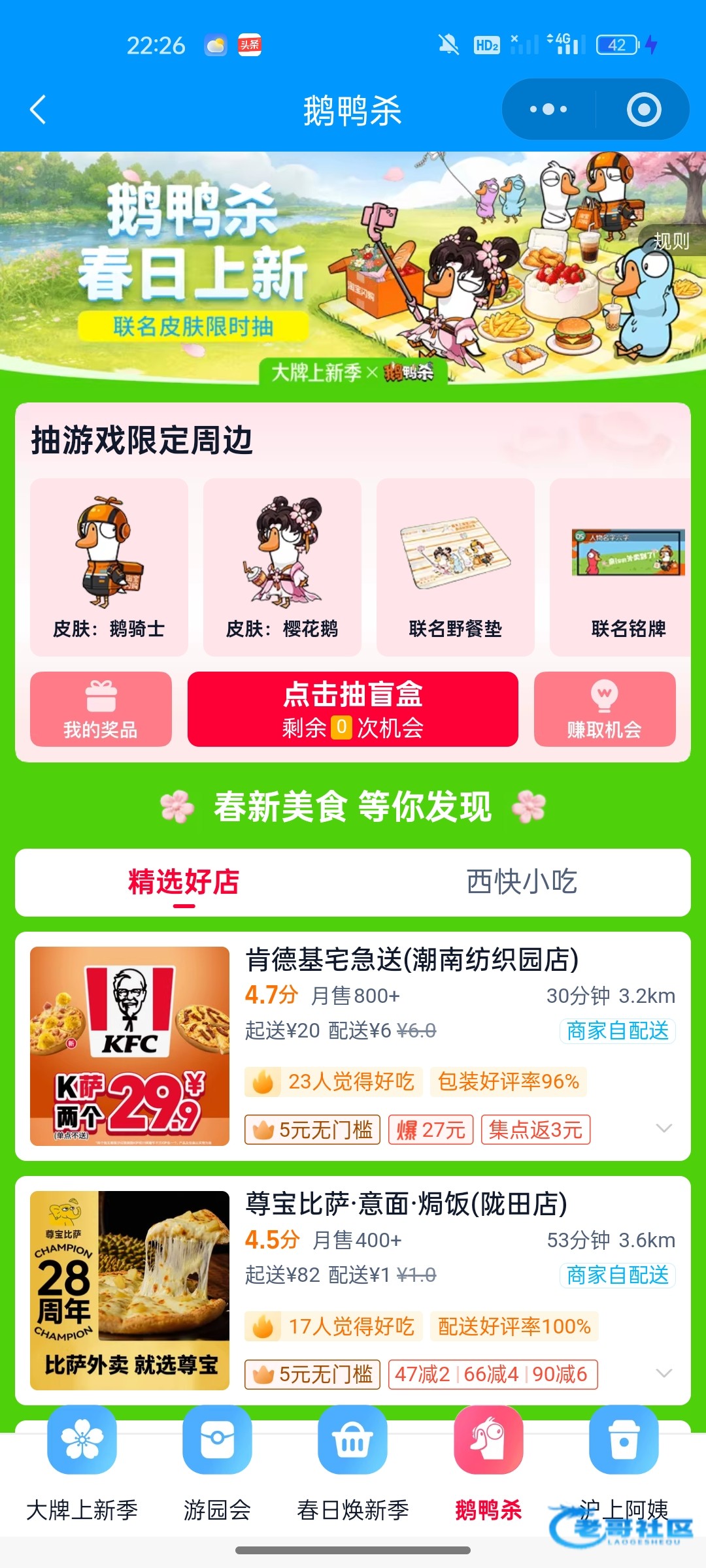 鹅鸭杀联动抽奖,鹅骑士10左右,樱花鹅15到20,闲鱼随便出,饿了么小程序搜“鹅鸭杀“……