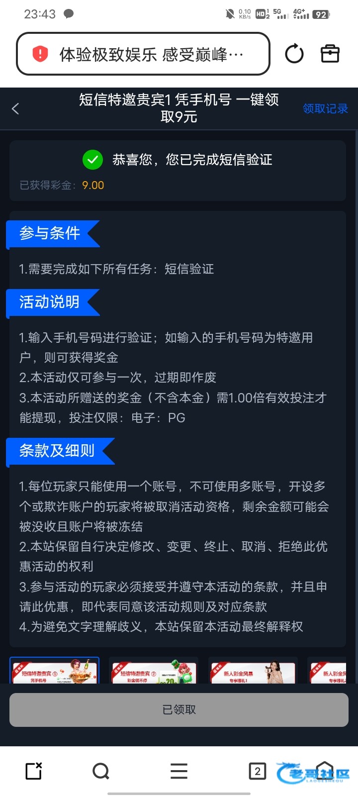 地址 http://9P.cc 是号码就送 注册名字随便填 反正出款也是虚拟不查 找到新人特邀第一条验证手机秒到 限制pg我领几两个号没打出来