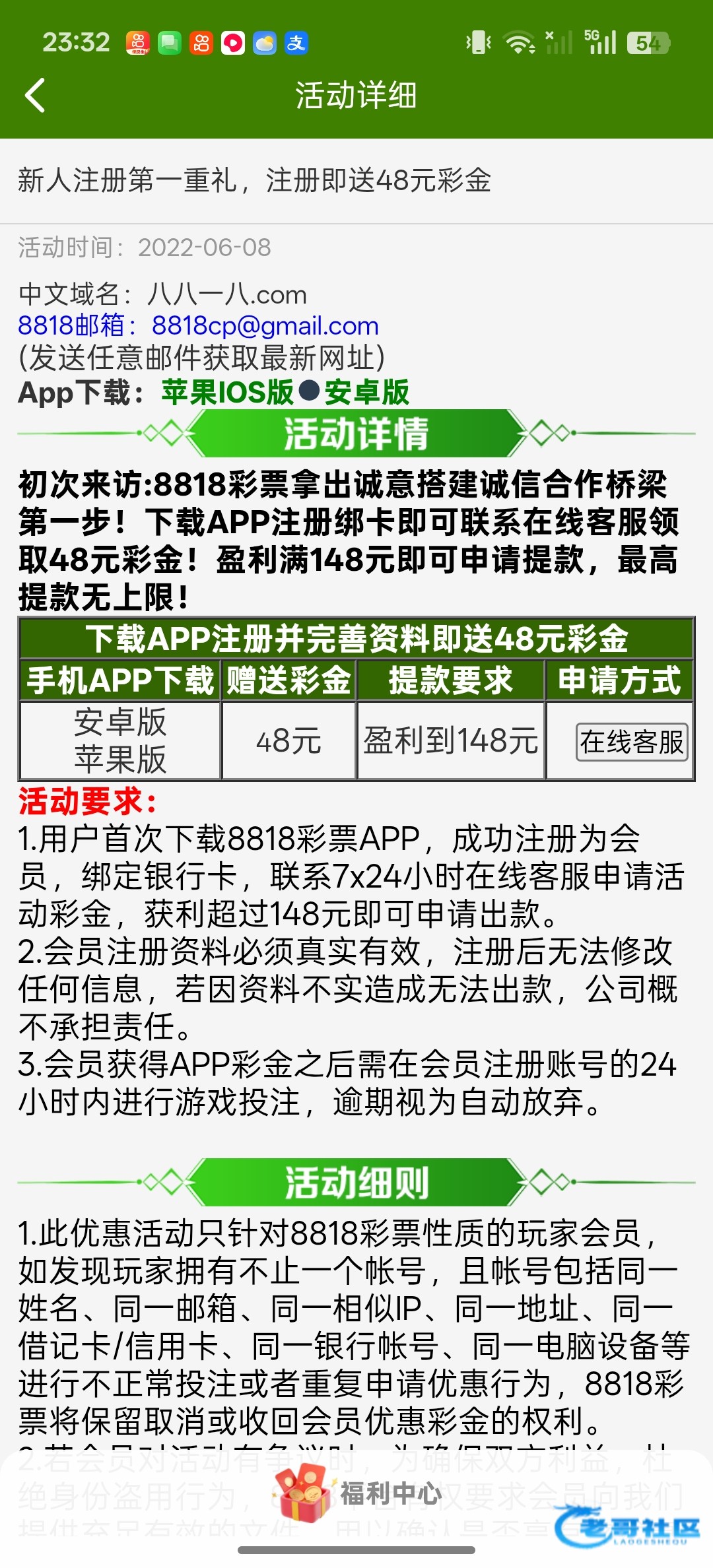 注册显示注册过,用常用的登陆看看显示有48。估计以前申请的吧,估计审核慢了忘记了。但是又写着彩金必须24小时内用了。先打了再说吧