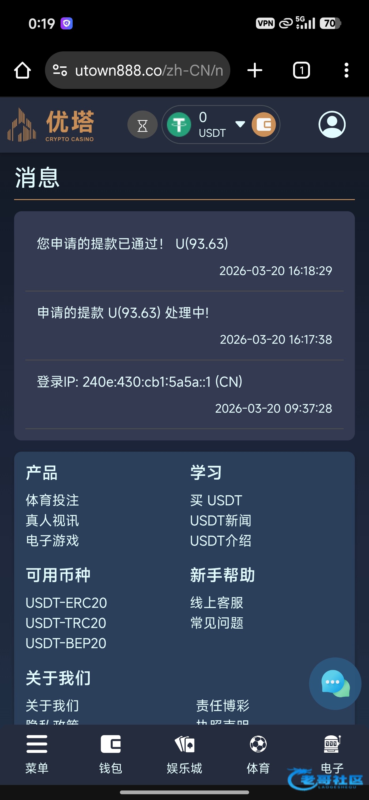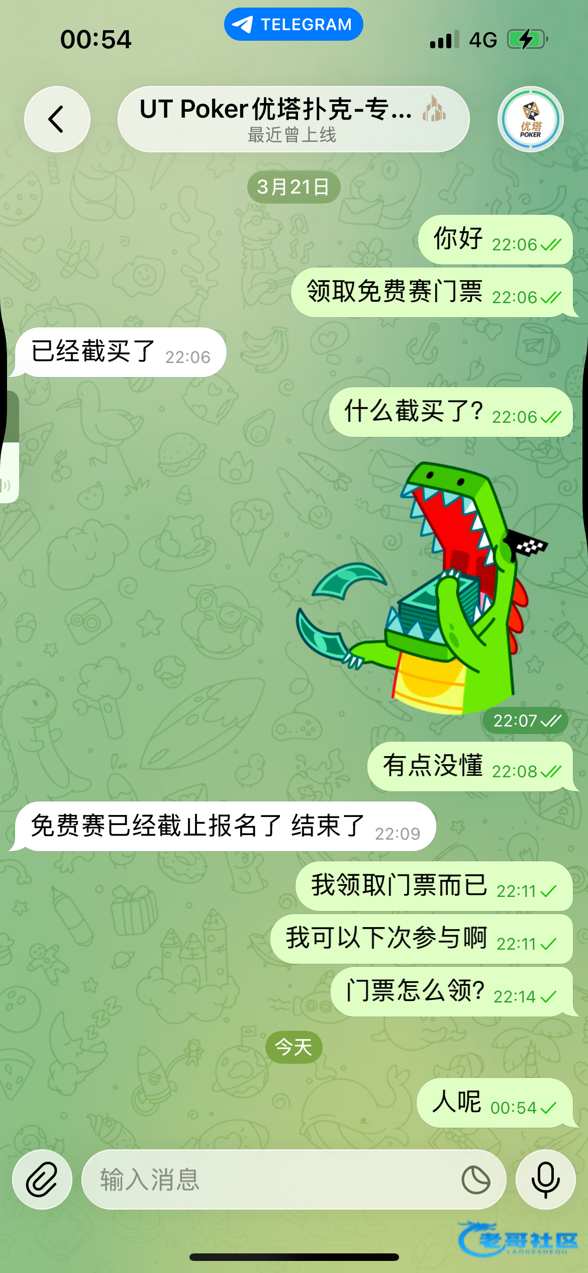 注册好以后 飞机上打开机器人对话 @utownbot 点击领取扑克免费门票 比赛时间周五周六晚上9点 每周都可以领 奖励也不错 会玩德州的哥们去吧 今天就有比赛。获奖了记得给个有效 https://ut005.com/