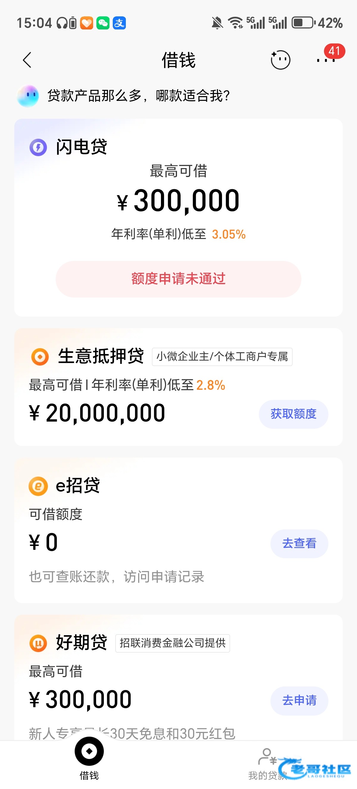 招商银行app 里面的招联小钱包申请额度有1000,我不知道是不是每个人都有,反正我是在网上各种贷款平台都试过都没下款 昨晚上登录招商银行app 看到这个招联小钱包 可以借1000 我就试了一下 说实话 我根本不抱任何希望 没想到就给我就下款了 真是救了我一命 你们有招商银行的可以去试试 首页点借钱 往下拉 找到招联小钱包 希望有所帮助
