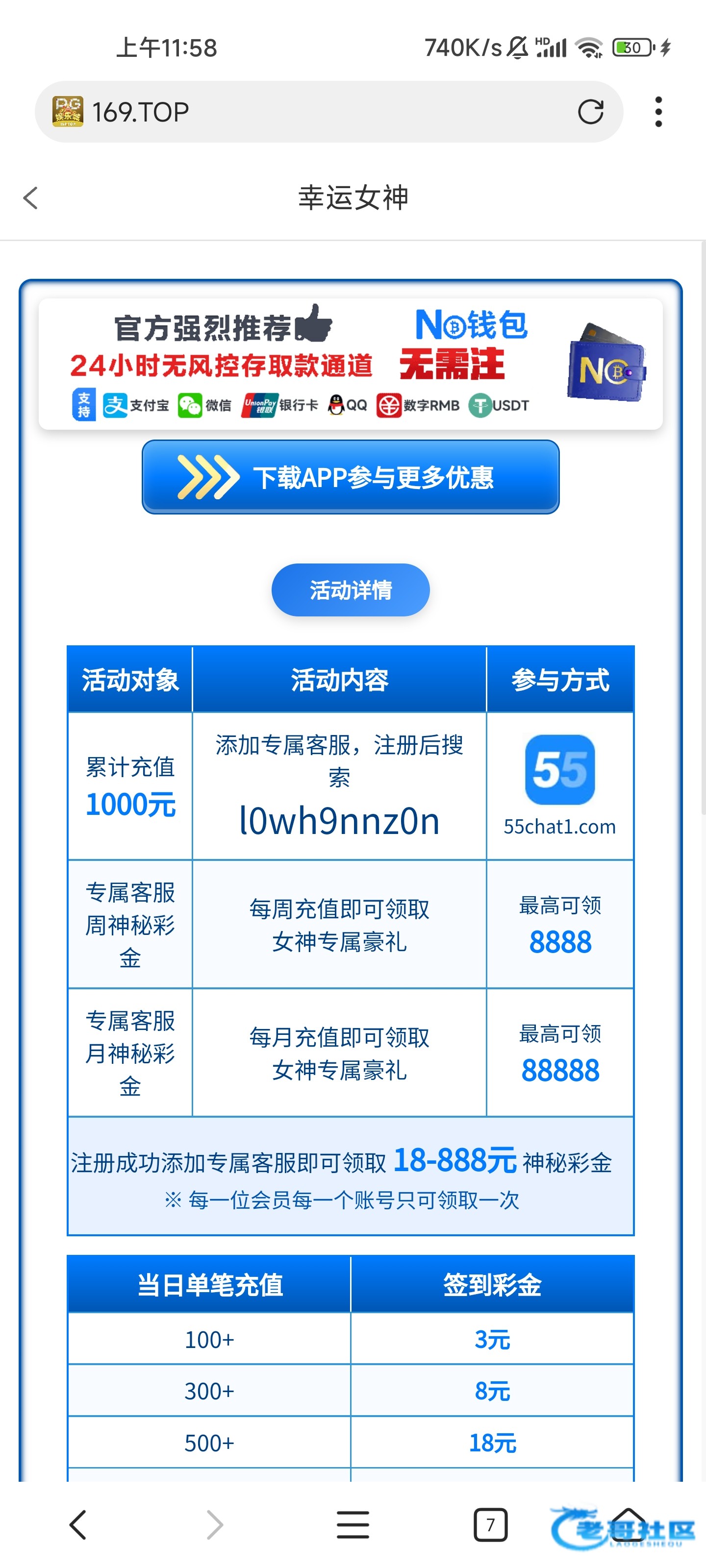 前两天刚刚出的活动 历史充值满1000去加客服 169.vip