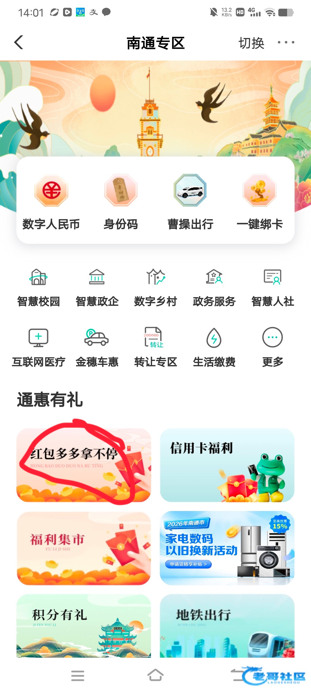 农业银行app注册地选江苏代码107088,注册好以后首页城市专区选南通,按图进入领就行,实测领8个一块