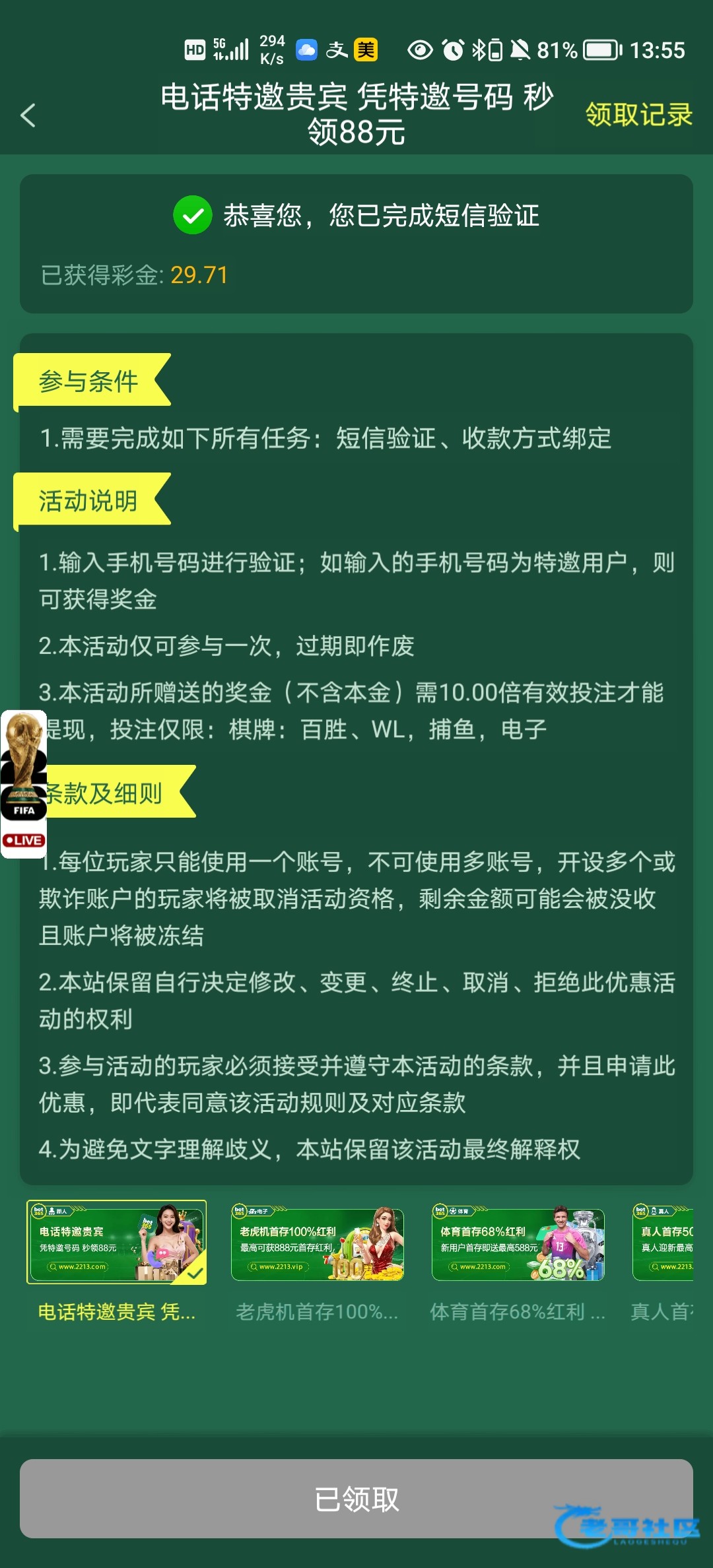 哪位老哥能帮忙下载下,领取下彩金?收到电话叫我领,老手机安装不了app
