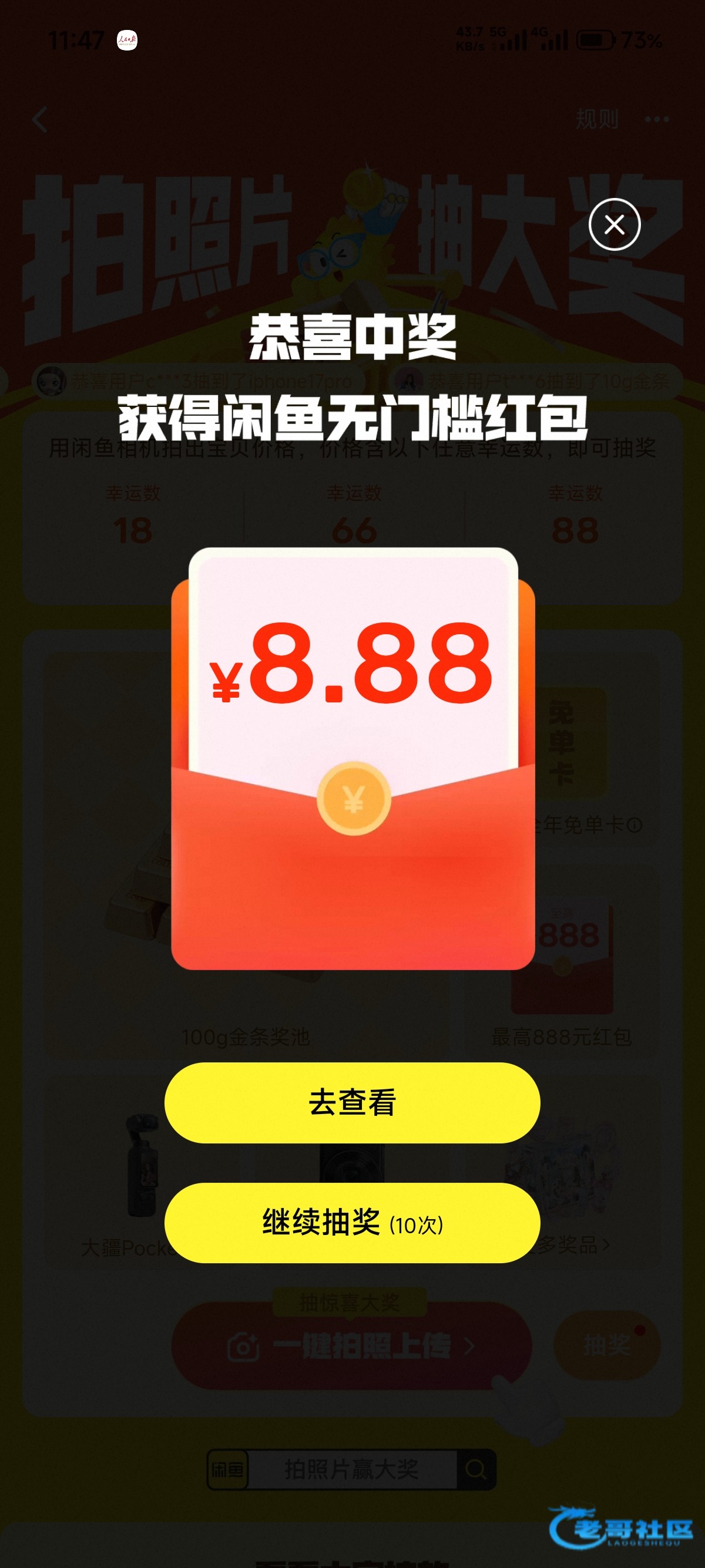 闲鱼搜春日好礼,一张图复制9张上传,多上传几次,次数多了在抽,基本必中
