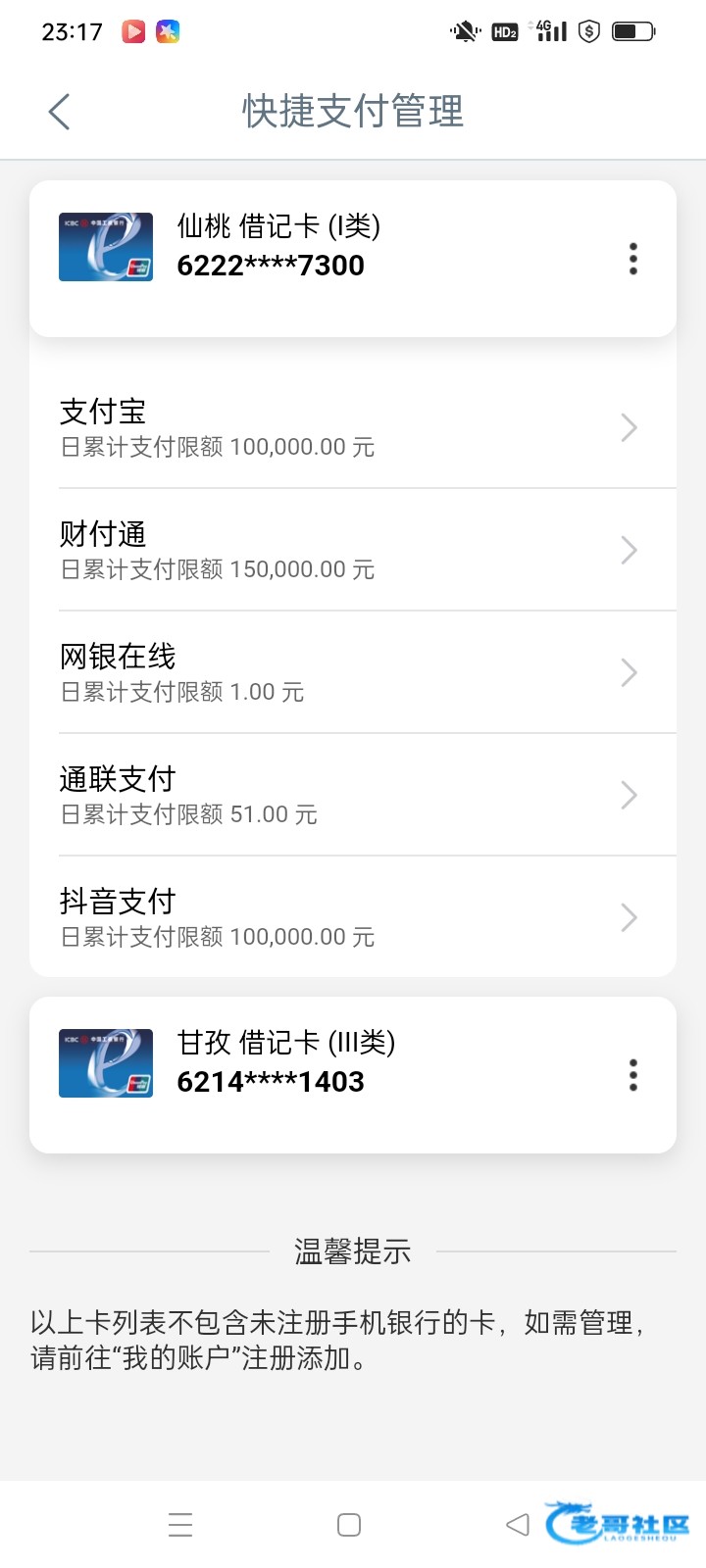 五百改个几毛限额,就扣你五十六块会员费。卡限额的是玩逾期转贷套路,一波干大几千的时候用的。另外中行的卡App改快捷限额没用,绑定的这个渠道一样能扣走