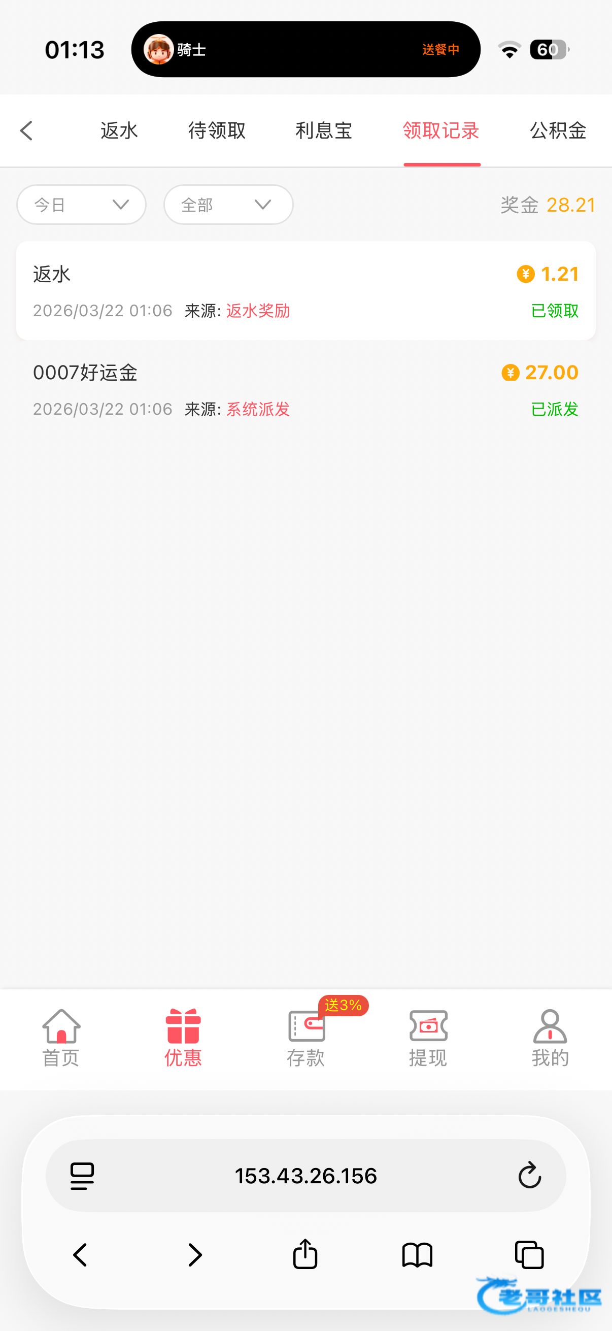 前两天注册的,17彩金没送刚才去看