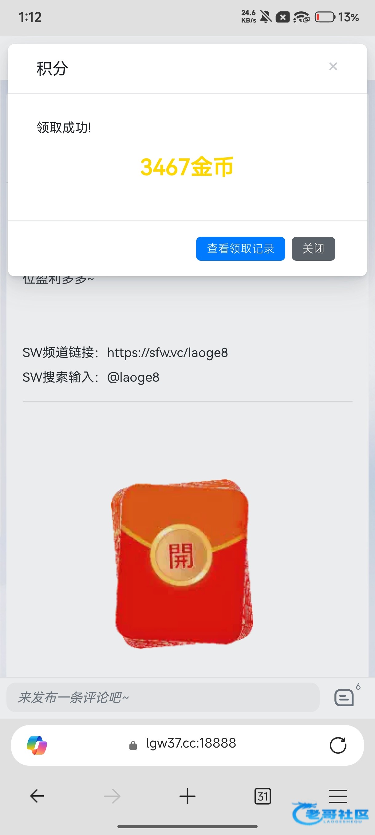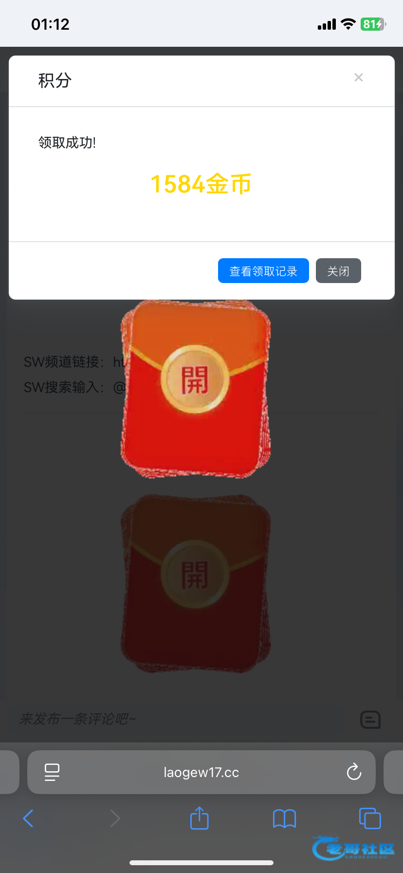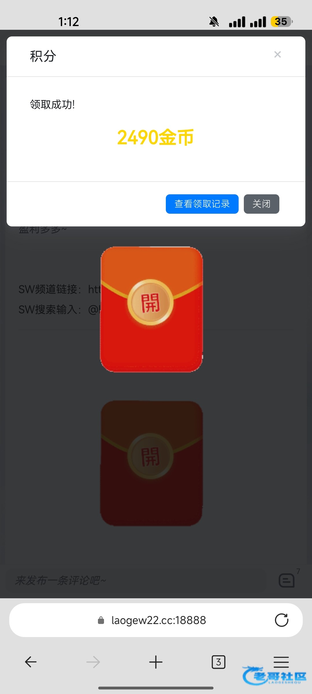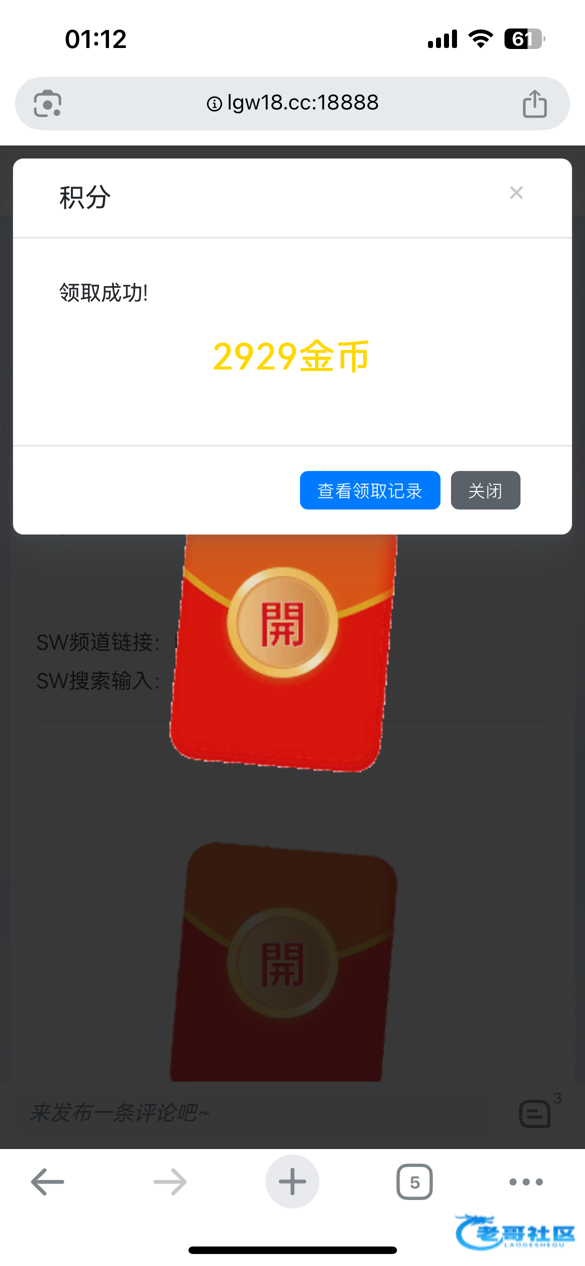 抢红包需要输入5个数字的口令,统一放在频道里面,大家进群拿即可 50包 10万金币 论坛二级以上可抢,领到的记得反馈,兑换金币可以到论坛商城进行兑换即可,祝各位盈利多多~