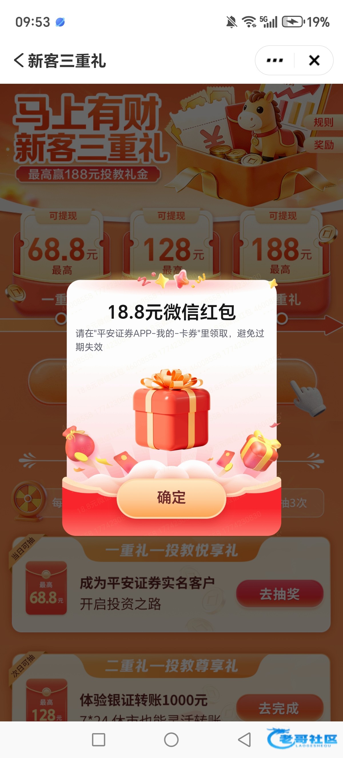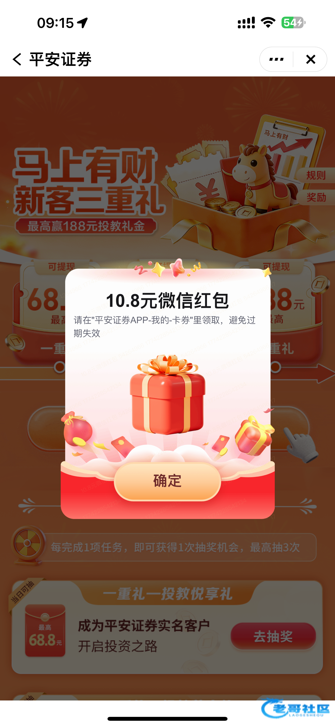 在平安好车主app 首页 点击证劵进去 然后开户之后就是等回访大概1-2个小时 我领了10.8 直接能提到微信里 金额应该是随机的最高是68元 领到的老哥反馈一下啊