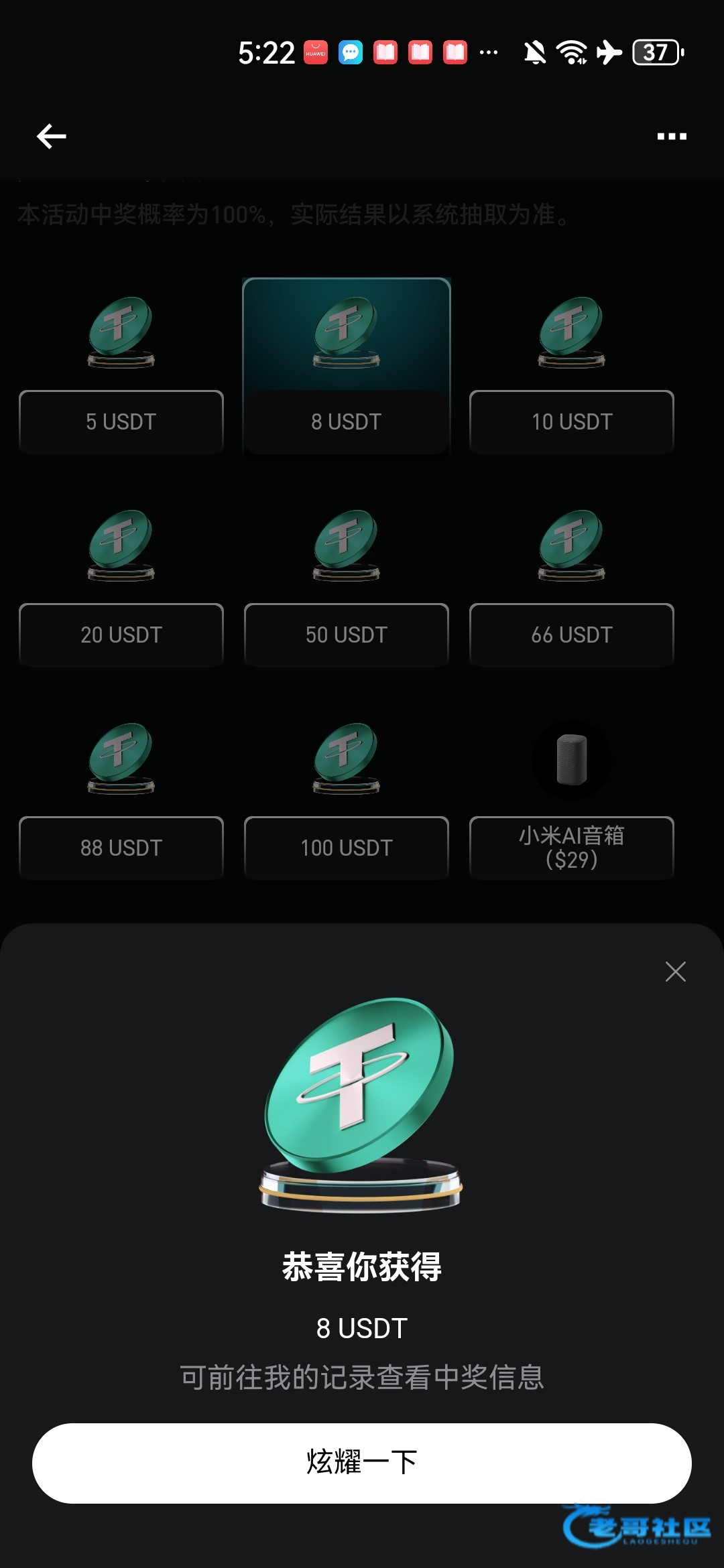 这个是官网地址。下载app注册实名后按照图片点进去活动报名。过一会会给一次抽奖机会。 抽奖是百分百中奖。最低5U。不是秒给,需要审核发放。