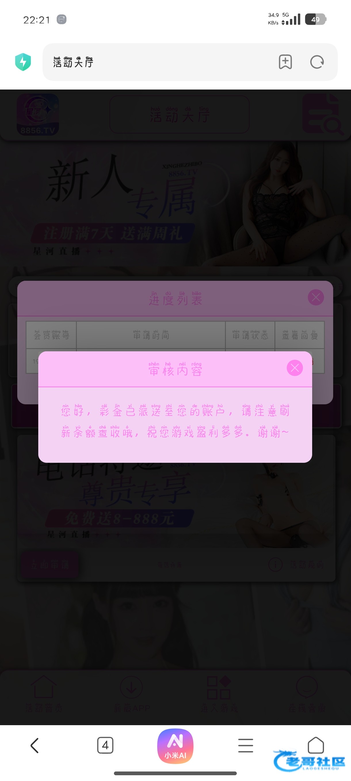 活动中心填手机号吗自助领取等待审核完自动到账即可审核时间有点久领到18已经出款请勿充值链接8856.tv