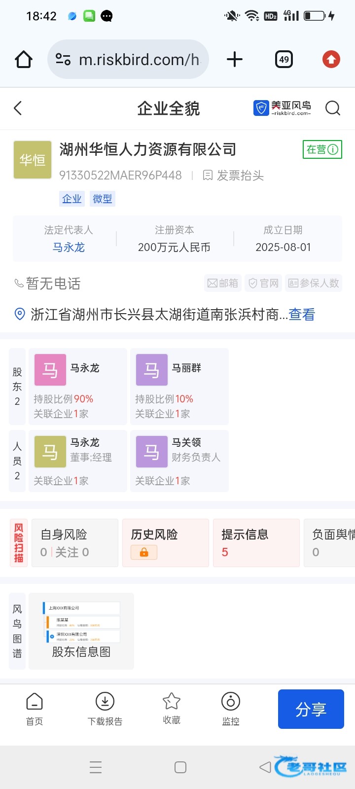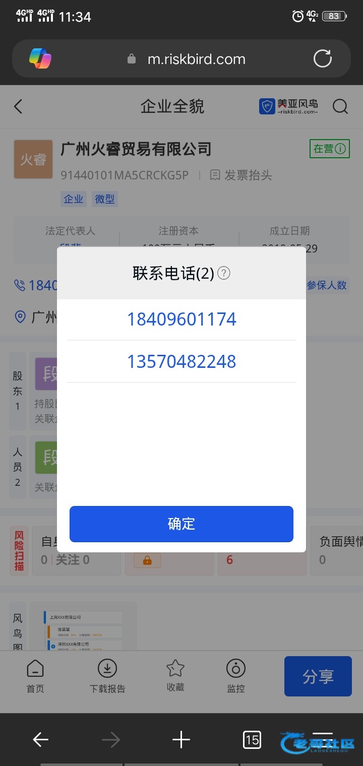 有被冒用身份信息领工资的老哥可以免费查对方公司电话,别用企查查收费,用风鸟免费查,https://m.riskbird.com/h5/