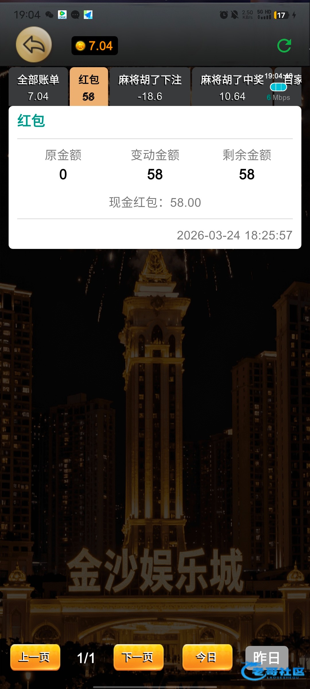 第一天领到58没打出来的话,第二第三天还能领58,另外存100还送58。那个麻将有水