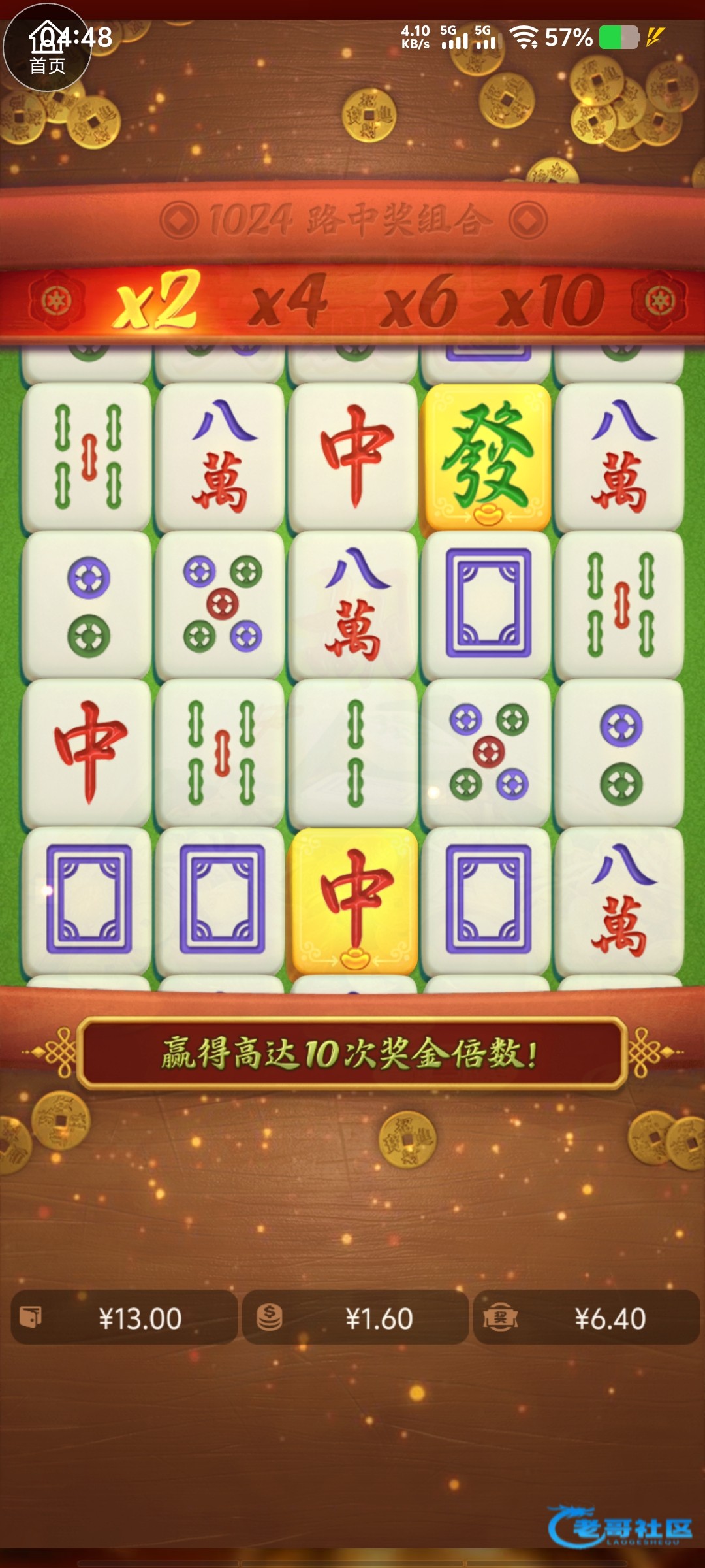 他吗的麻1 0.4胡中中10元 0.6胡也是10元 然后去拉麻2直接死wg台很他吗难白嫖