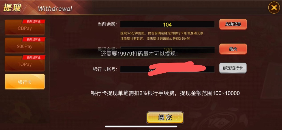 上了264,我提现直接扣成一百,让我打2万流水,丢死人的台子