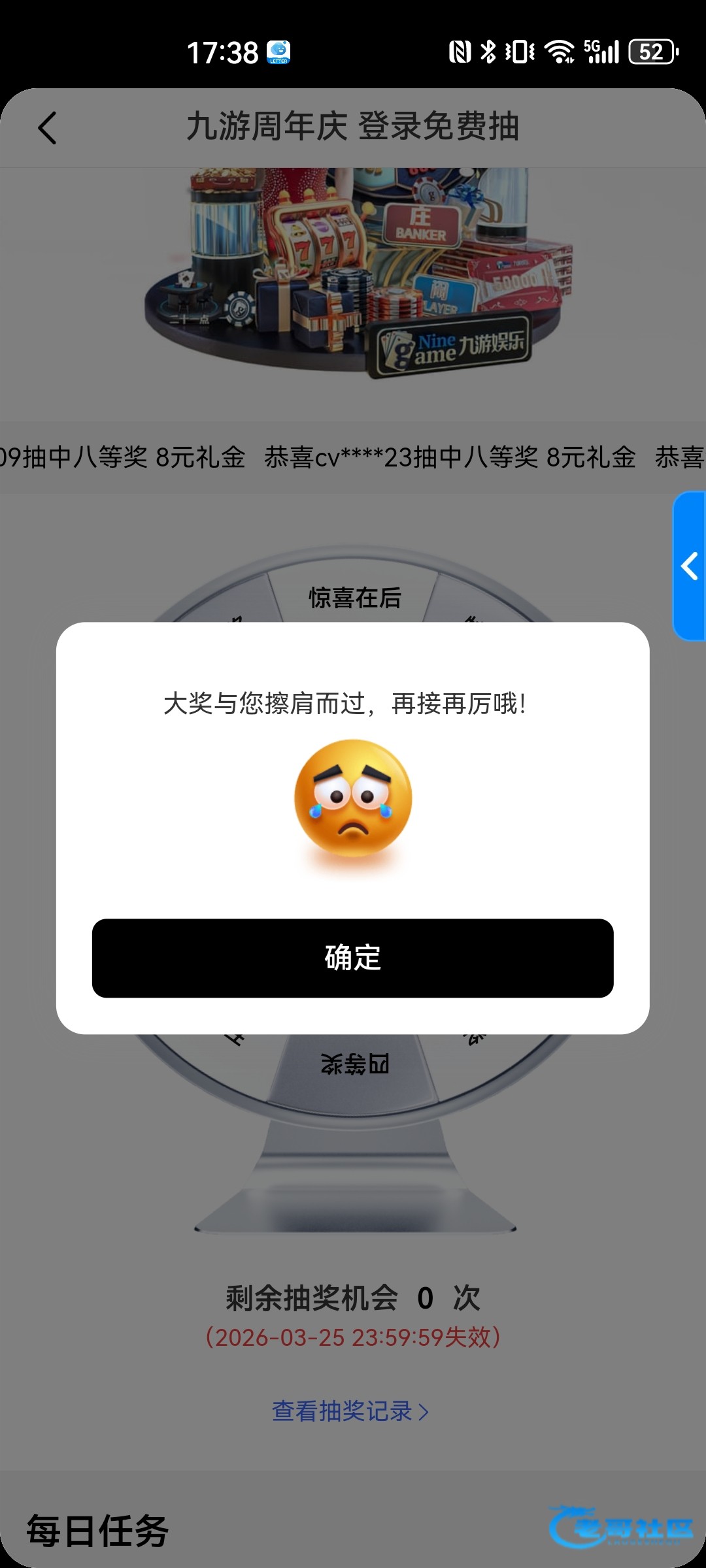 抽到8,红包雨没看到